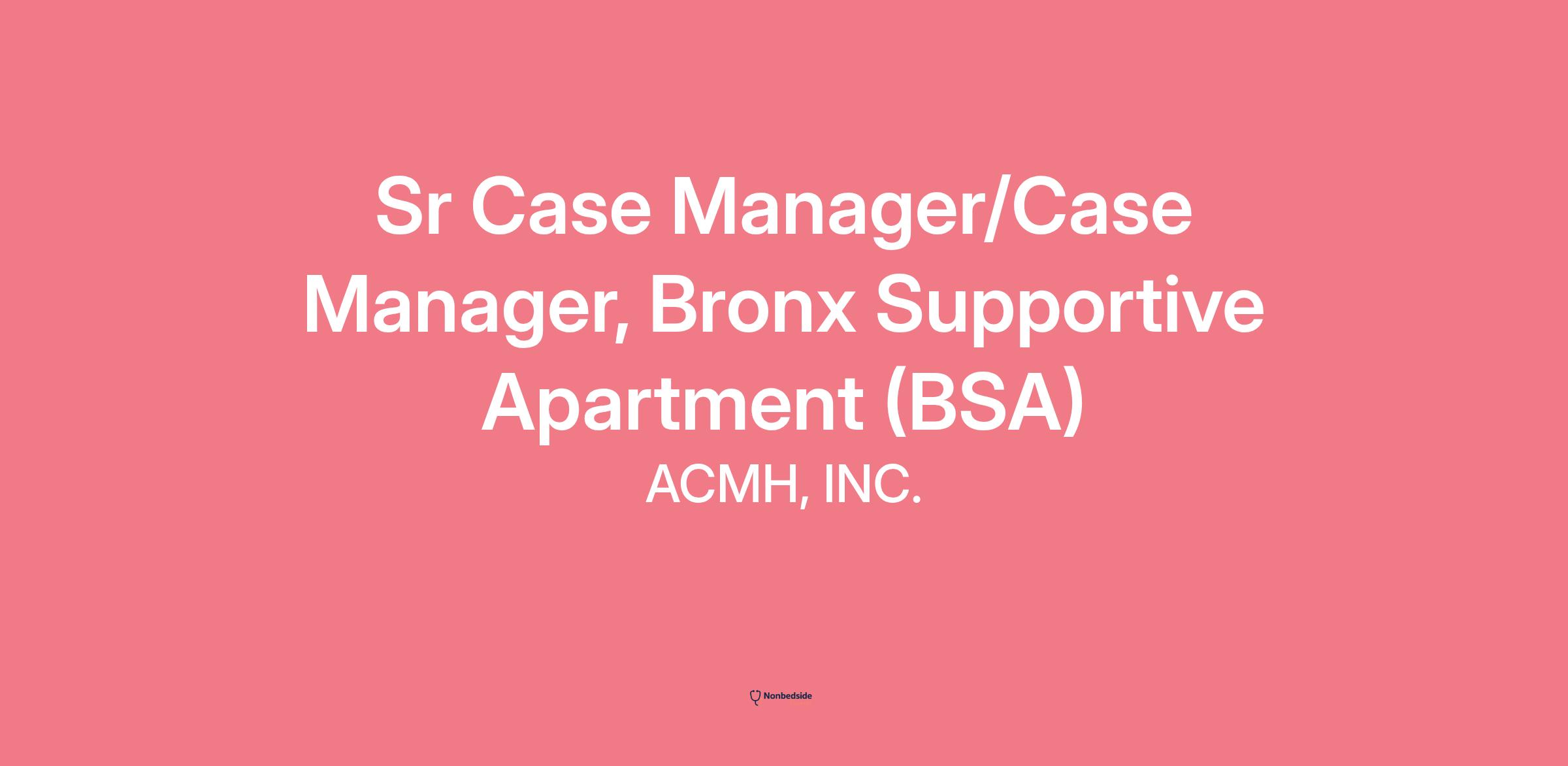 Sr Case Manager/Case Manager, Bronx Supportive Apartment (BSA)