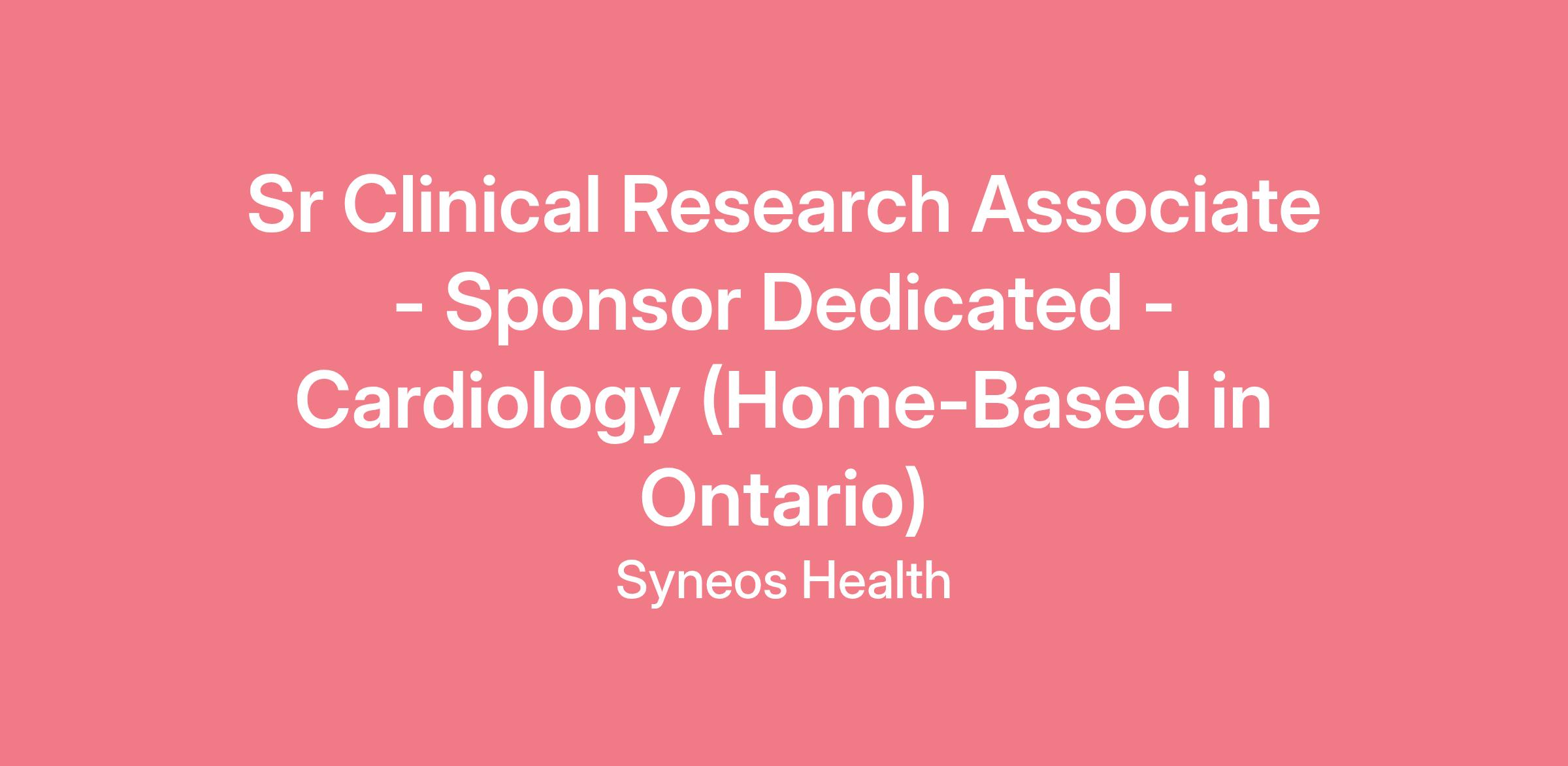 Sr Clinical Research Associate - Sponsor Dedicated - Cardiology (Home-Based in Ontario)