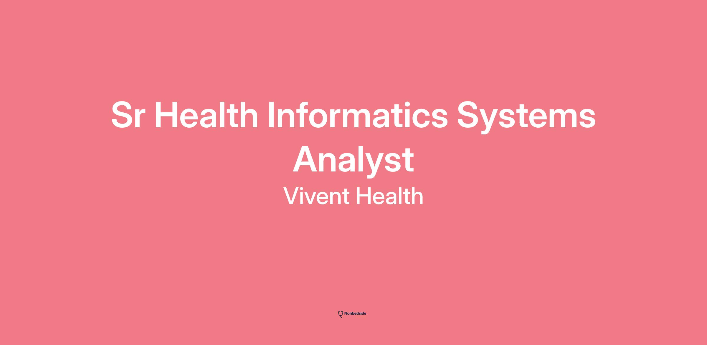 The Senior Health Informatics Systems Analyst is a key member of the Health Informatics and Technology (HIT) Team responsible for assuring that mission-critical Health Informatics systems and applications are functioning properly and optimized across the Vivent Health Enterprise.