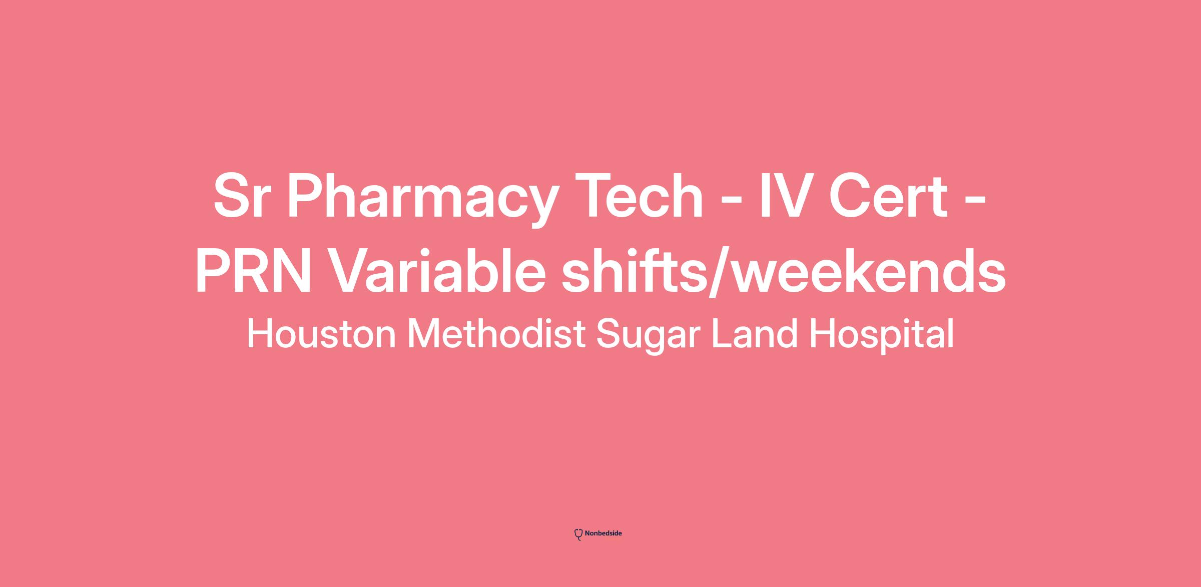 - Two years of Pharmacy Technician experience applicable to the specific work setting (e.g., hospital, specialty pharmacy); may consider a Pharmacy Technician with one year experience as a Houston Methodist Pharmacy Technician