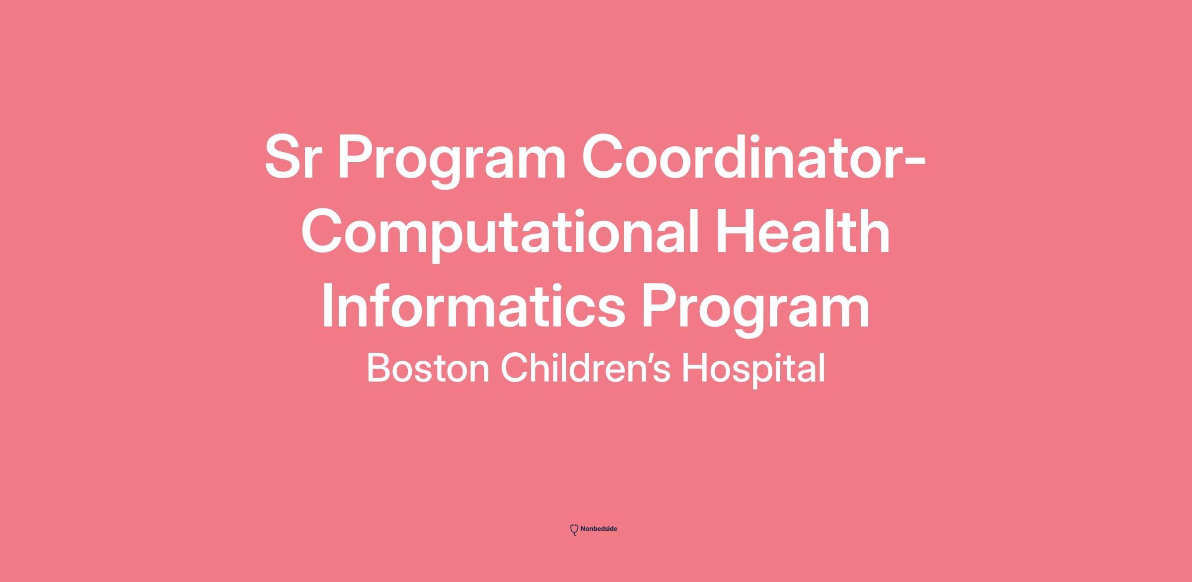 Position Summary We are seeking a proactive and highly organized Senior Program Coordinator to support the Director of the Computational Health Informatics Program (CHIP) at Boston Children’s Hospital. This role balances strategic initiatives with essential administrative functions, serving as a central point of coordination and communication within a dynamic and innovative program. If you thrive in a fast-paced environment, enjoy solving complex challenges, and excel at both operational and strategic tasks, this is an incredible opportunity to make a significant impact.