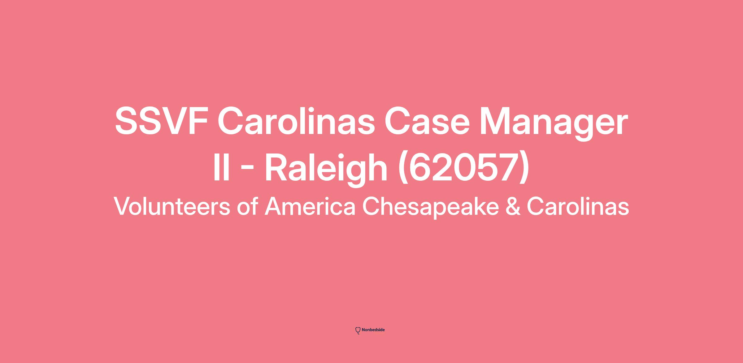 Overview Join to apply for the SSVF Carolinas Case Manager II - Raleigh (62057) role at Volunteers of America Chesapeake & Carolinas