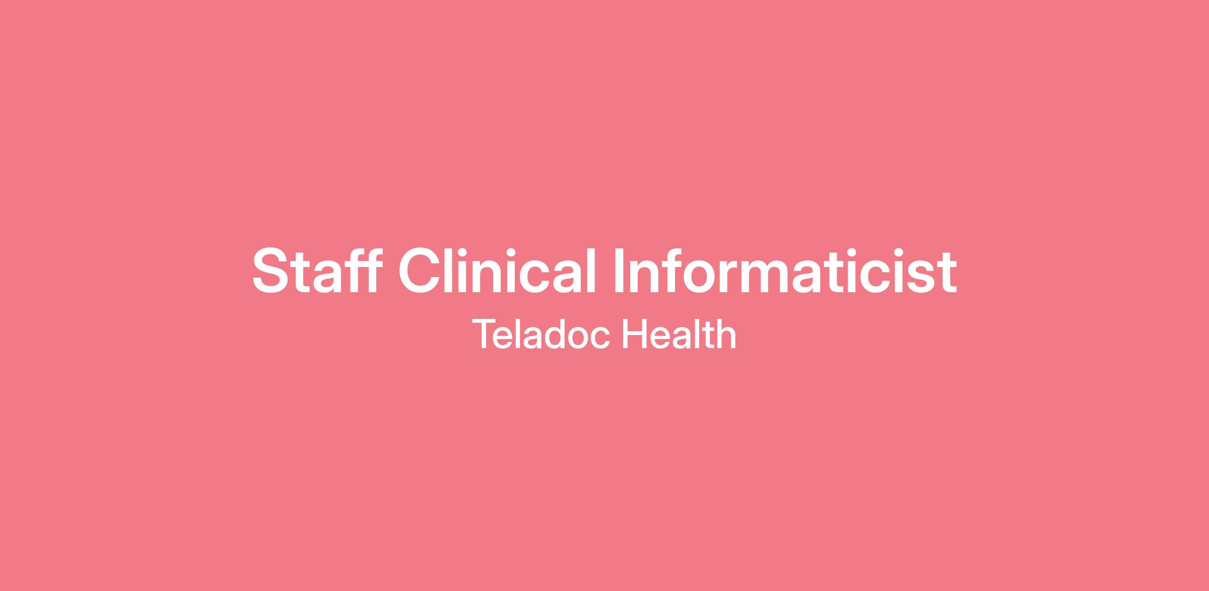 The Staff Clinical Informaticist supports the integration, management, and optimization of clinical data systems to enhance virtual care delivery and clinical quality at Teladoc Health. This role focuses on leveraging modern data platforms and electronic medical records (EMRs) to drive data-driven decision-making, support clinical workflows, and ensure the integrity and utility of clinical information.