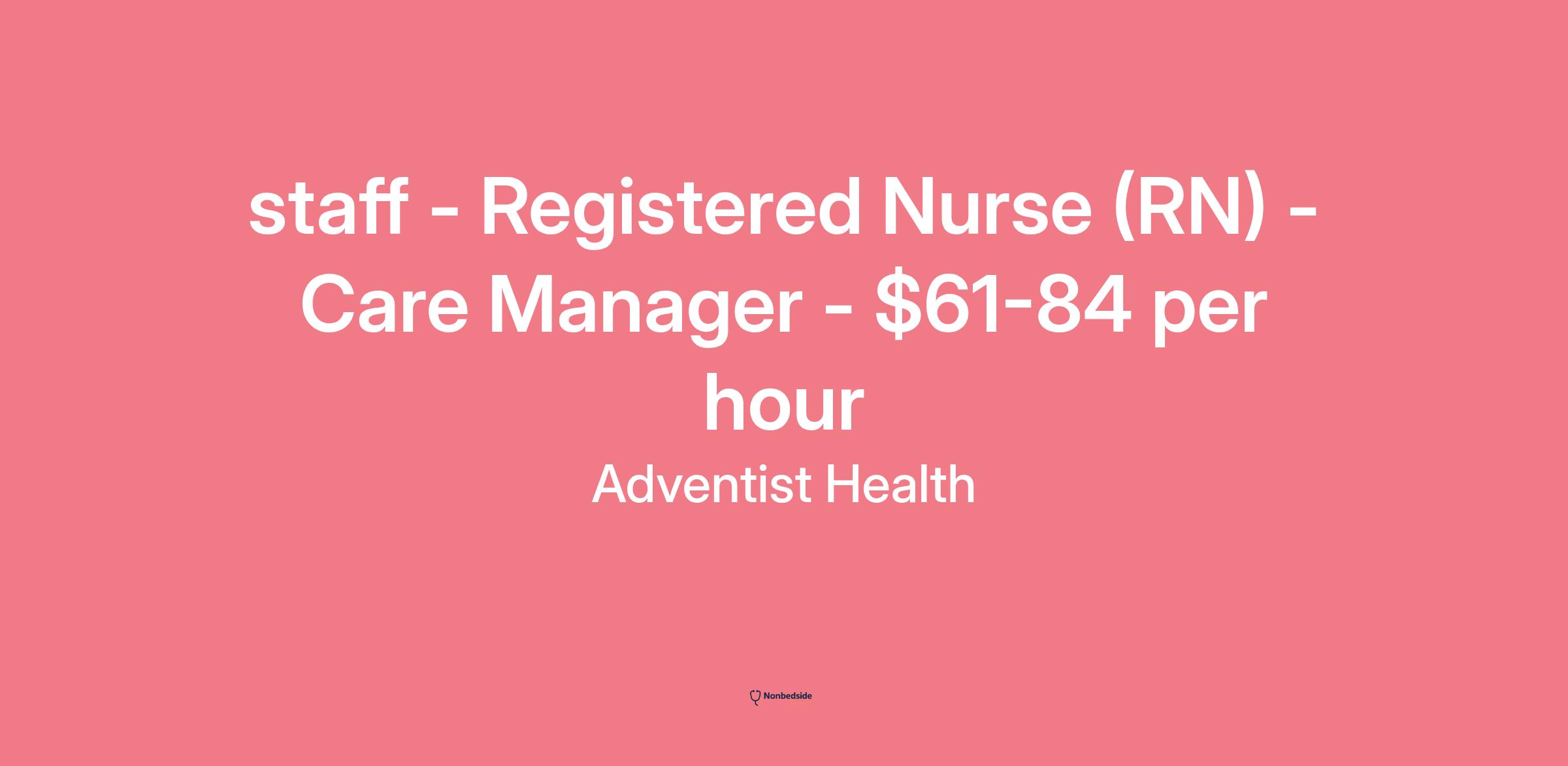 Adventist Health Job ID #40414. Posted job title: care manager (rn)