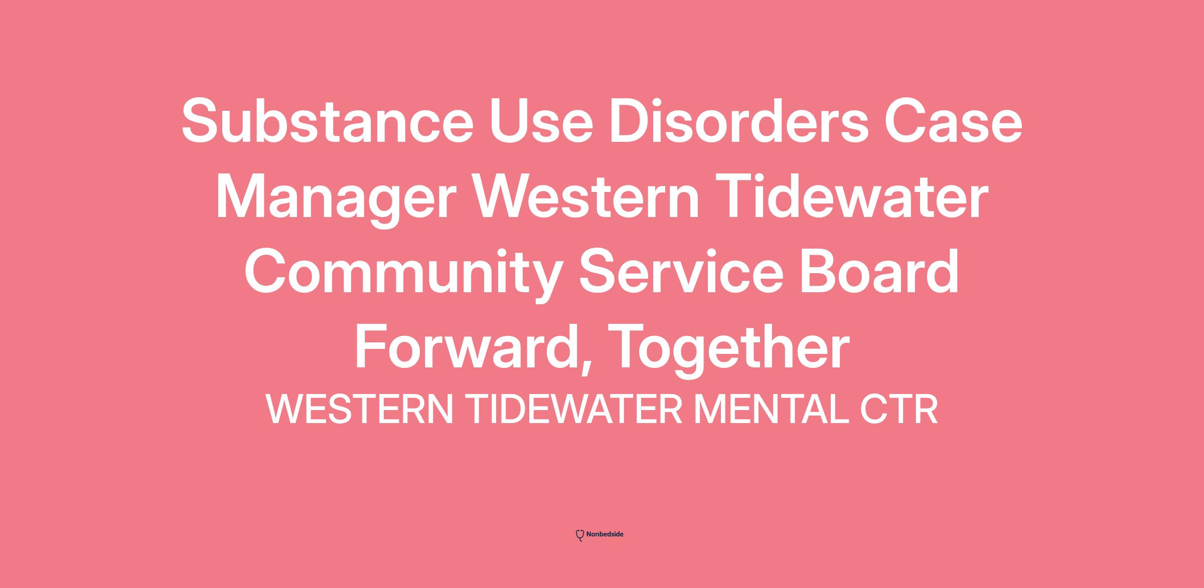 Western Tidewater CSB is seeking qualified Case Managers for our Substance Use Program. **Substance Abuse and Mental Health experience is preferred for this position. ** Responsibilities and Duties for Case Manager: Conduct comprehensive biopsychosocial assessments and screenings to determine client needs related to substance use disorder (SUD), mental health, housing, employment, and recovery supports.