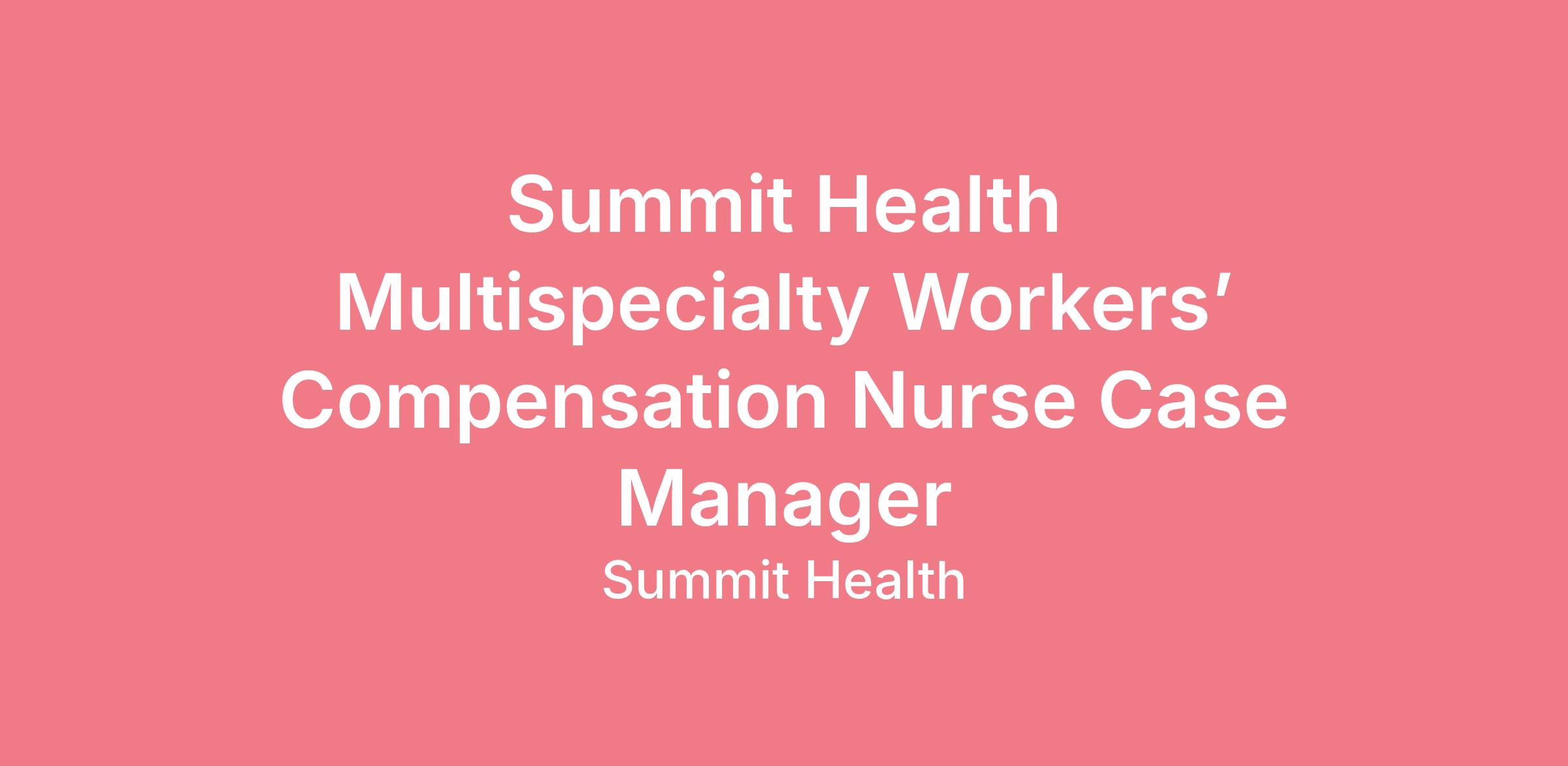 Summit Health Multispecialty Workers’ Compensation Nurse Case Manager