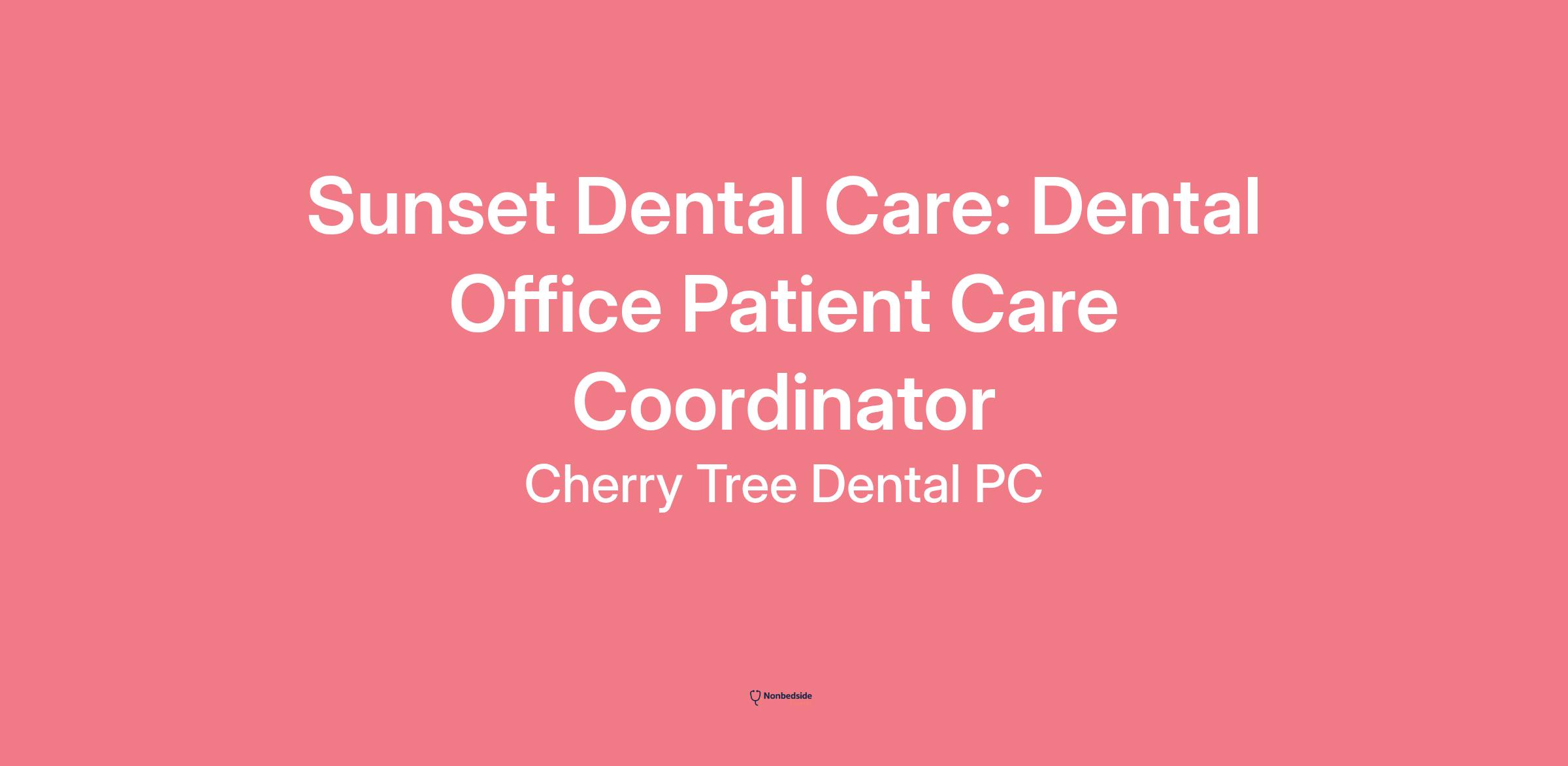 Sunset Dental Care is looking to hire a personable Dental Patient Care Coordinator to ensure that dental patients’ appointments are appropriately scheduled. The responsibilities of this position include entering patient information into our data system, answering patients’ questions, and arranging referrals to other dental specialists.