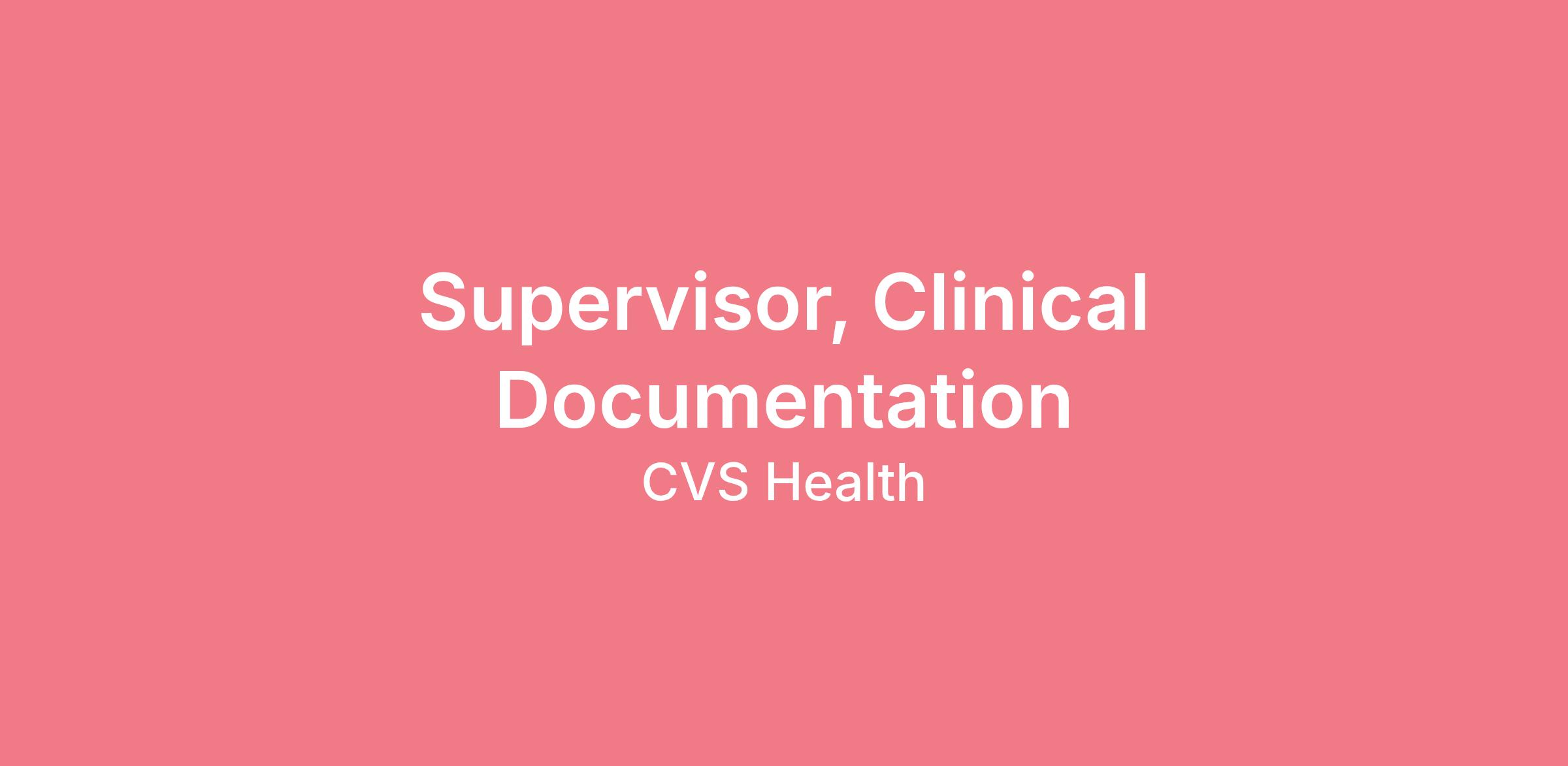 Title: Supervisor, Clinical Documentation (Full-time)