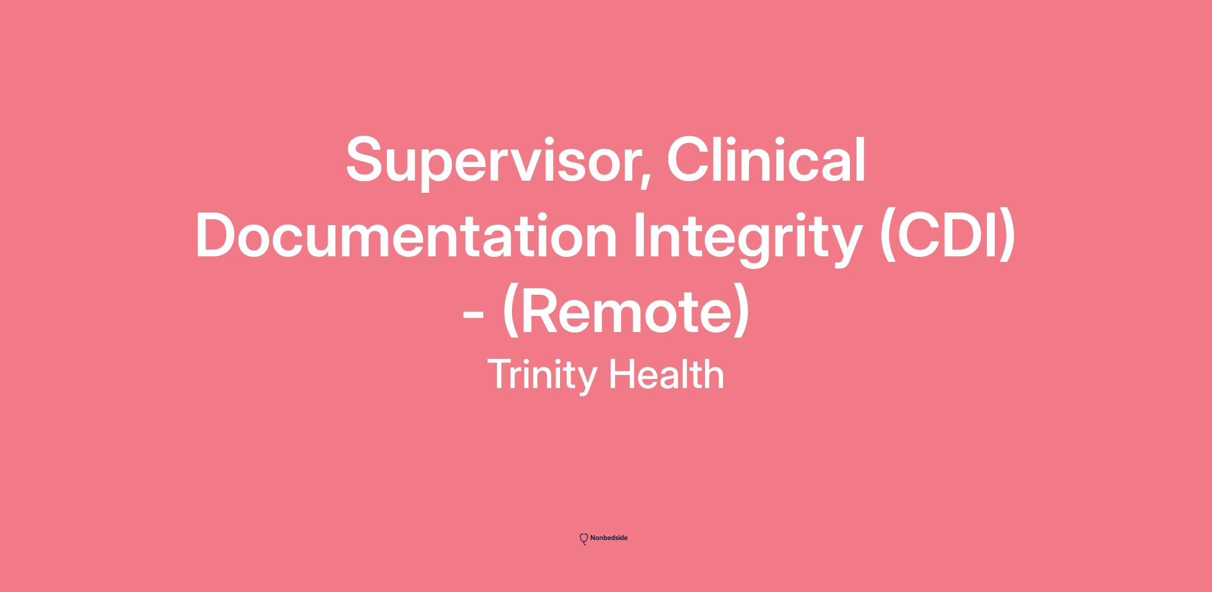 Supervisor, Clinical Documentation Integrity (CDI) - (Remote) Join to apply for the Supervisor, Clinical Documentation Integrity (CDI) - (Remote) role at Trinity Health