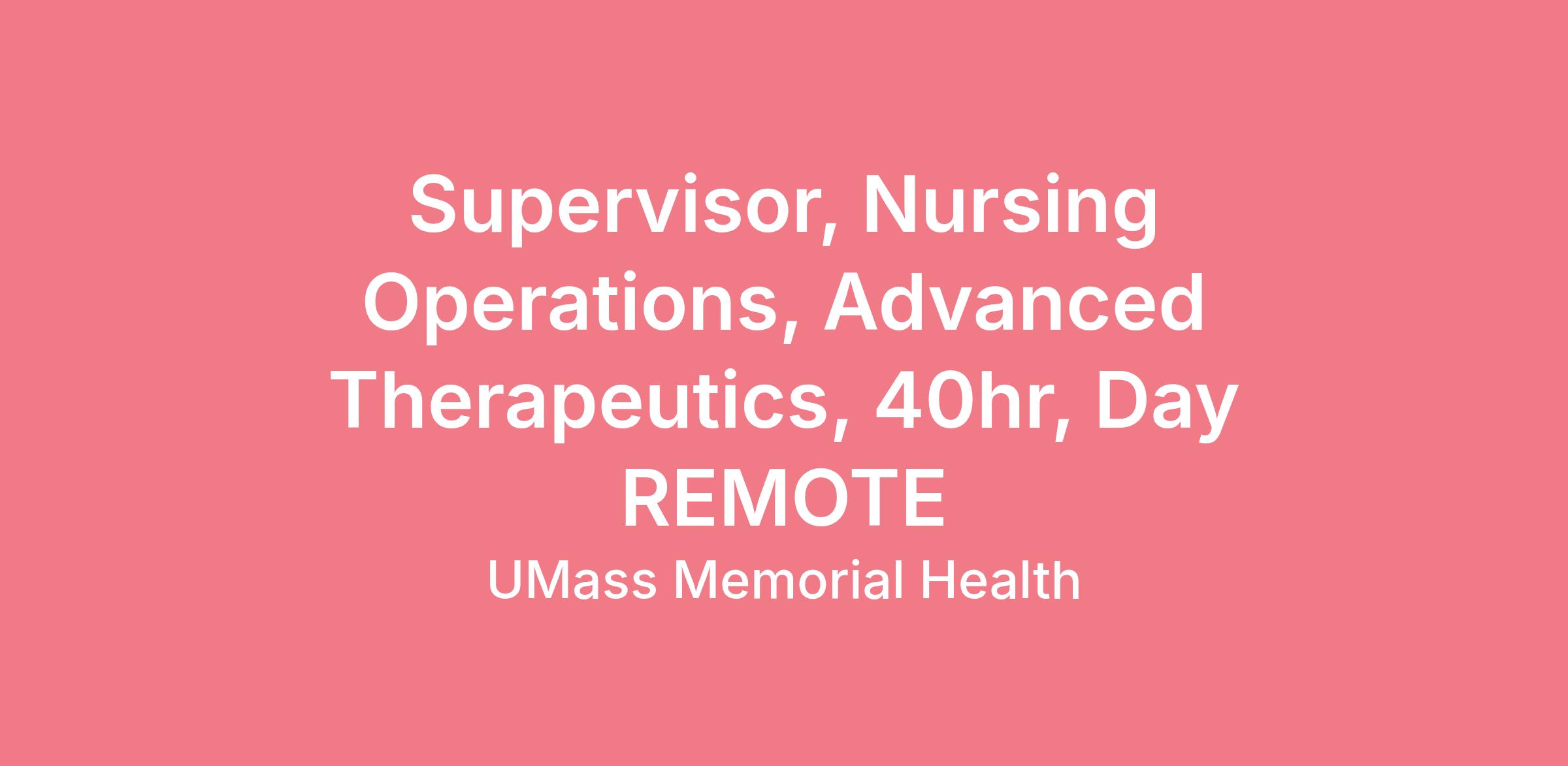 The Supervisor of Operations for the Advanced Therapeutics (ATRx) program provides day-to-day leadership, clinical oversight, and operational support to ensure the efficient, compliant, and high-quality delivery of patient care services. This role functions as a key liaison between clinical teams, ancillary staff, pharmacy operations, and referring providers. The Supervisor ensures workflows are optimized, service lines run smoothly, and patient access is maintained across multiple therapeutic areas including metabolic/weight management, IBD, dermatology, and future expansion areas.