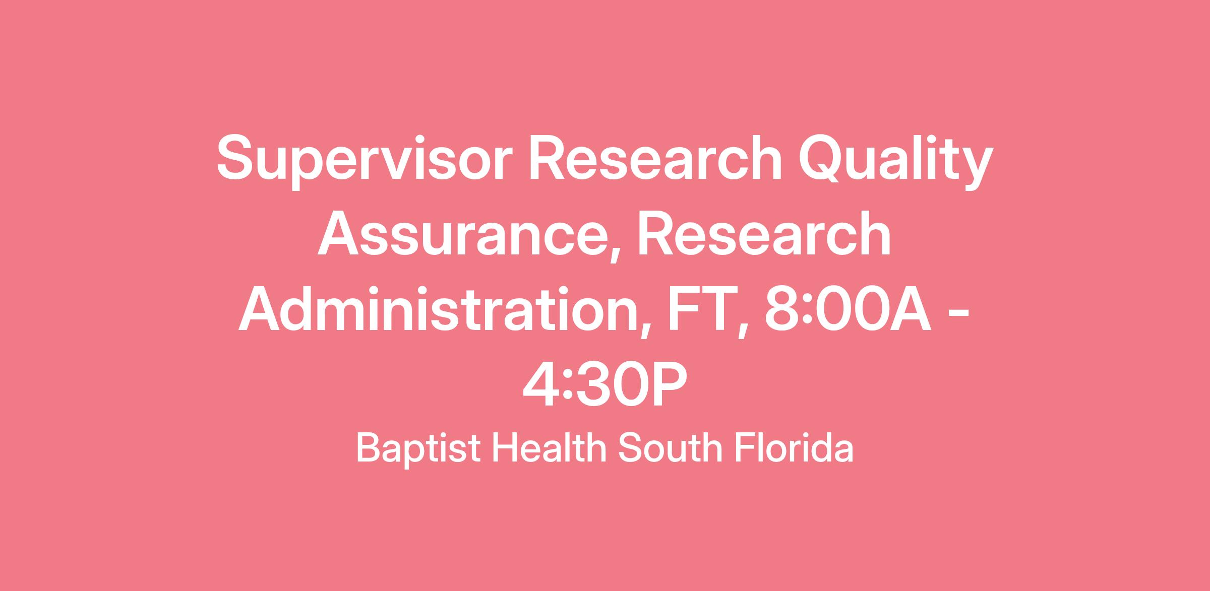 The Research Quality Assurance Supervisor is responsible for ensuring industry standards of quality being met and exceeded on an on-going basis. The individual will be responsible for providing advice and support to Operations staff in the implementation of, and adherence to, processes, controlled documents, tools, and templates to enhance the quality of deliverables. He/she will identify process improvement opportunities, author and review new processes. Support process re-engineering; contribute to the development of training materials as process subject matter expert. Will create a quality assurance program through which investigators and research staff involved in the conduct of clinical research will be educated and trained on current industry standards.