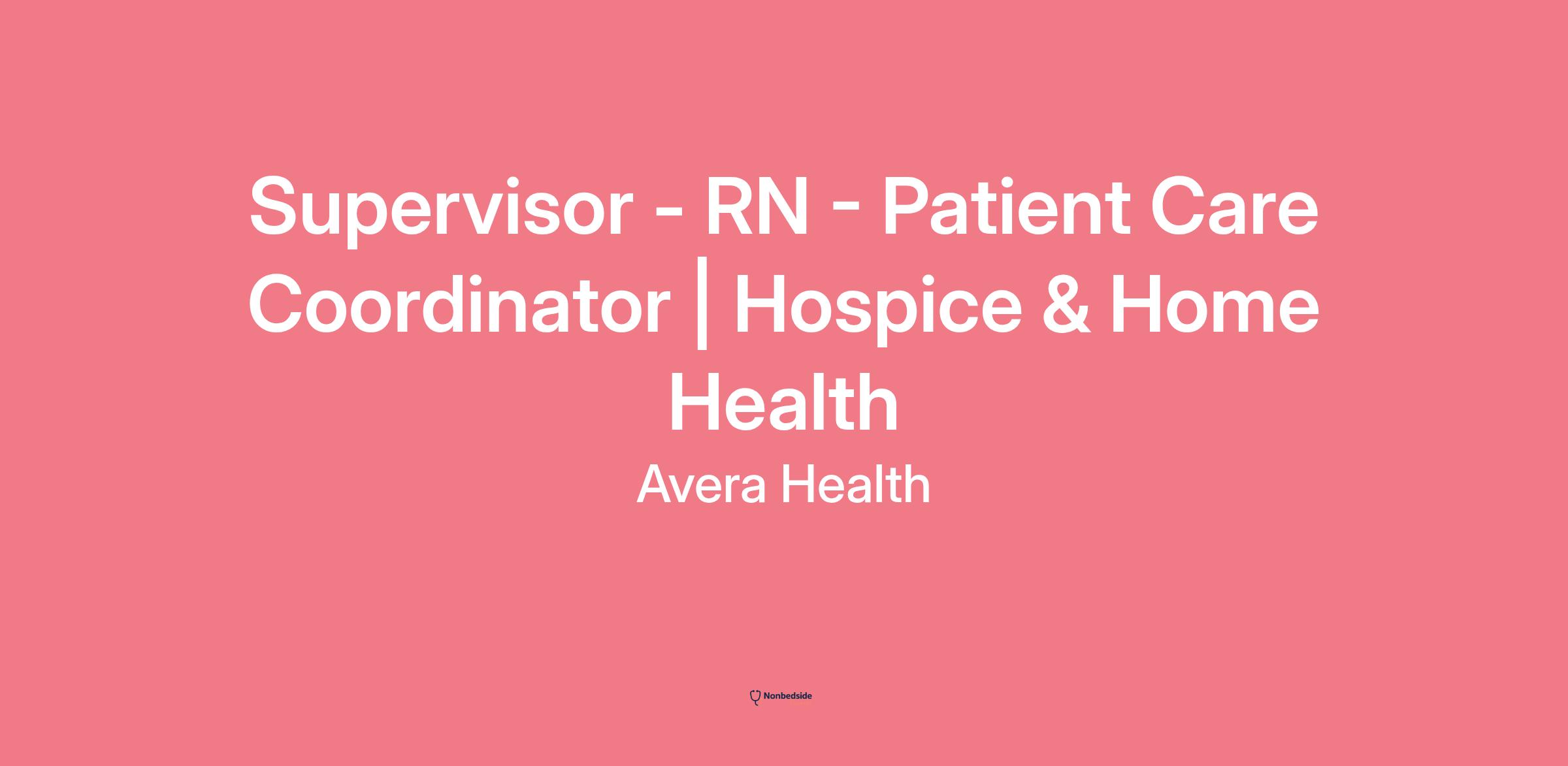- Documents each patient's home care plan and coordination activities according to standards established by Avera.