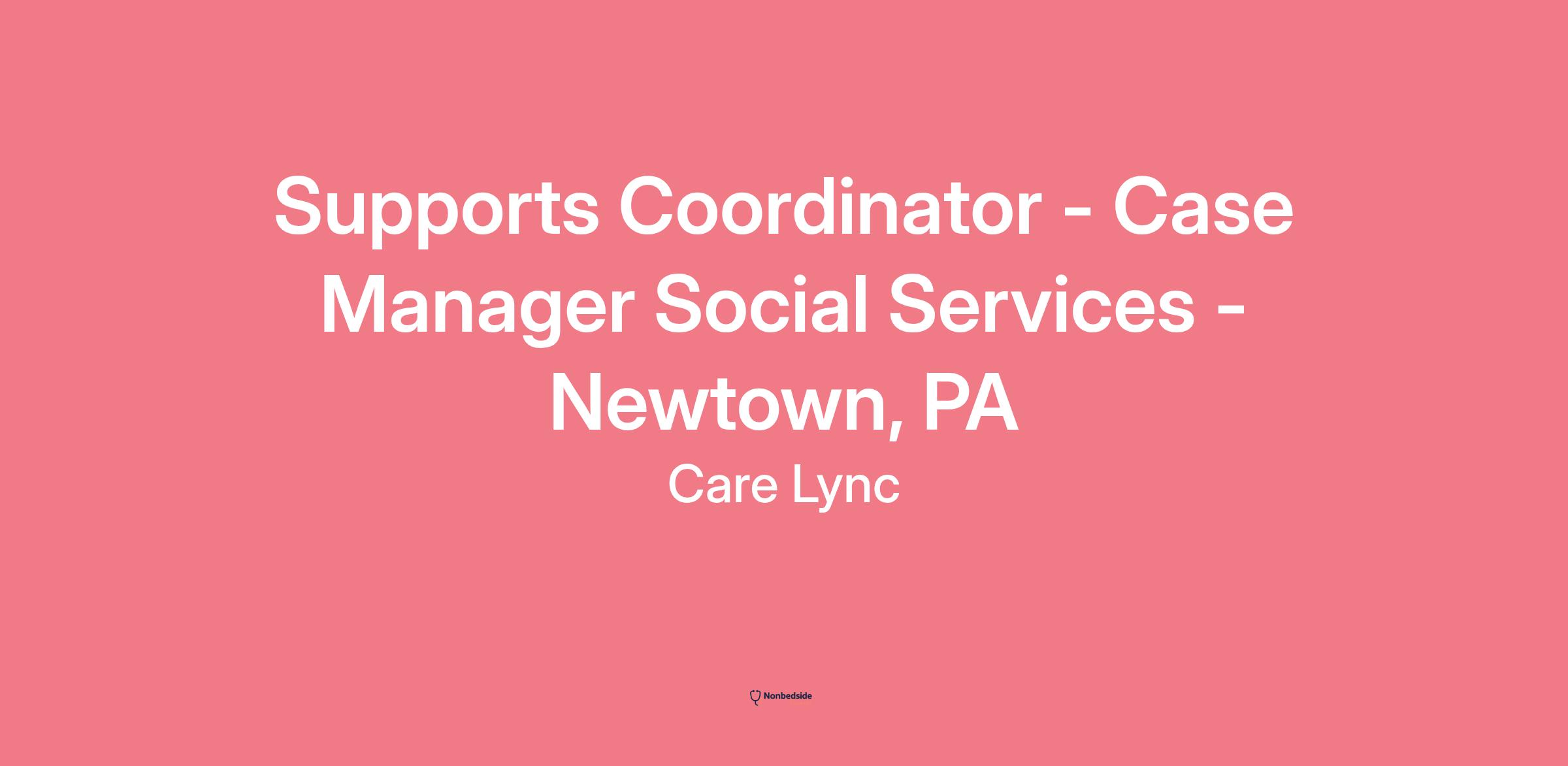 Supports Coordinator - Case Manager Social Services -Newtown, PA