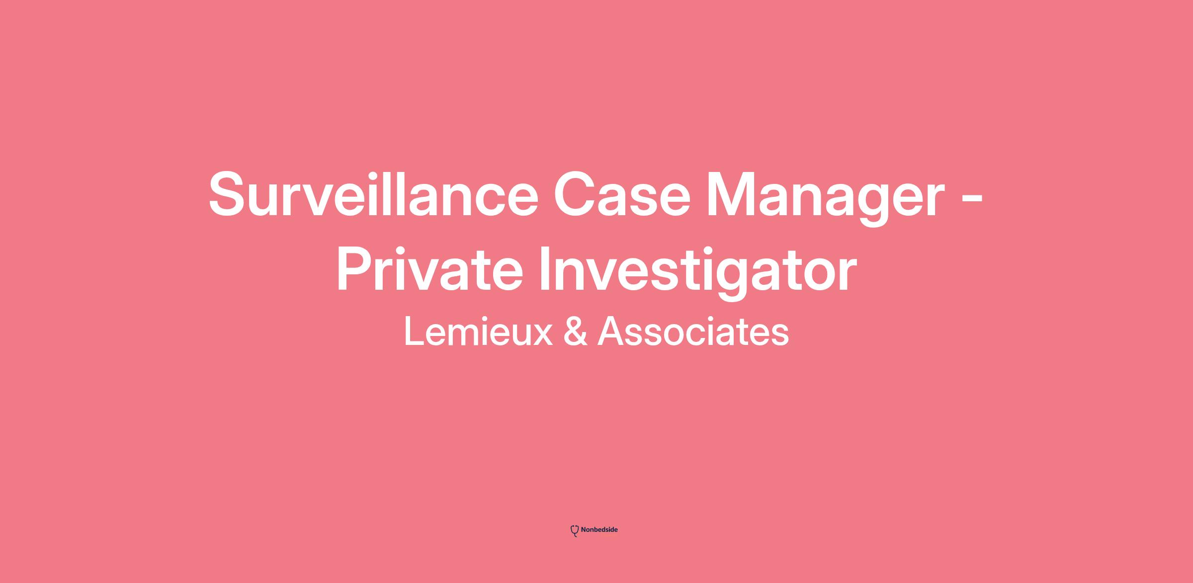 Overview Surveillance Case Manager - Private Investigator role at Lemieux & Associates. This full-time remote position reports directly to the Vice President of Operations and is focused on delivering high-quality investigative products to our clients.