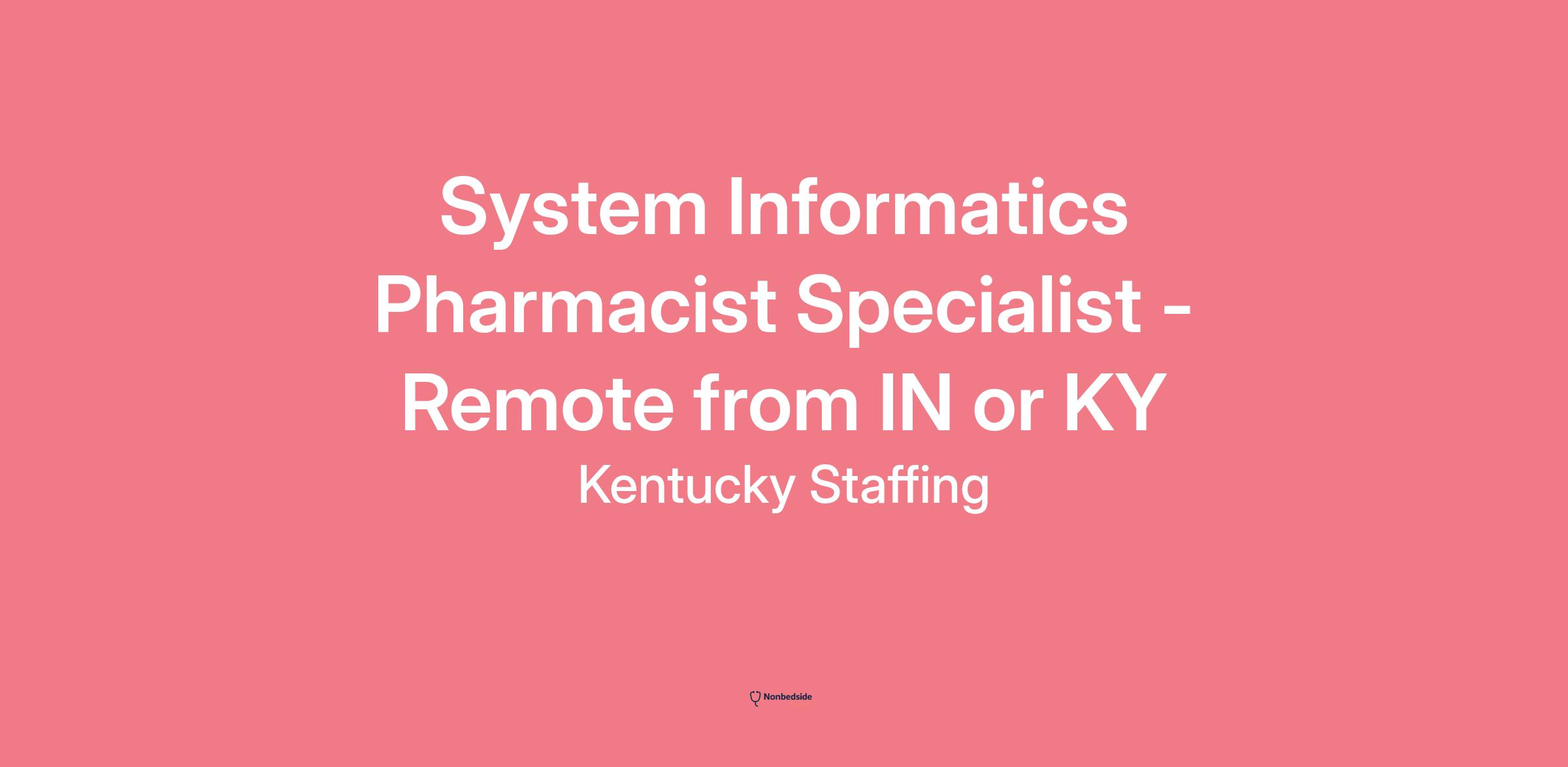 Baptist Health is looking for a Pharmacy Informatics Specialist to join our Central Pharmacy in LaGrange, KY! Remote opportunity for candidates residing in KY or IN.