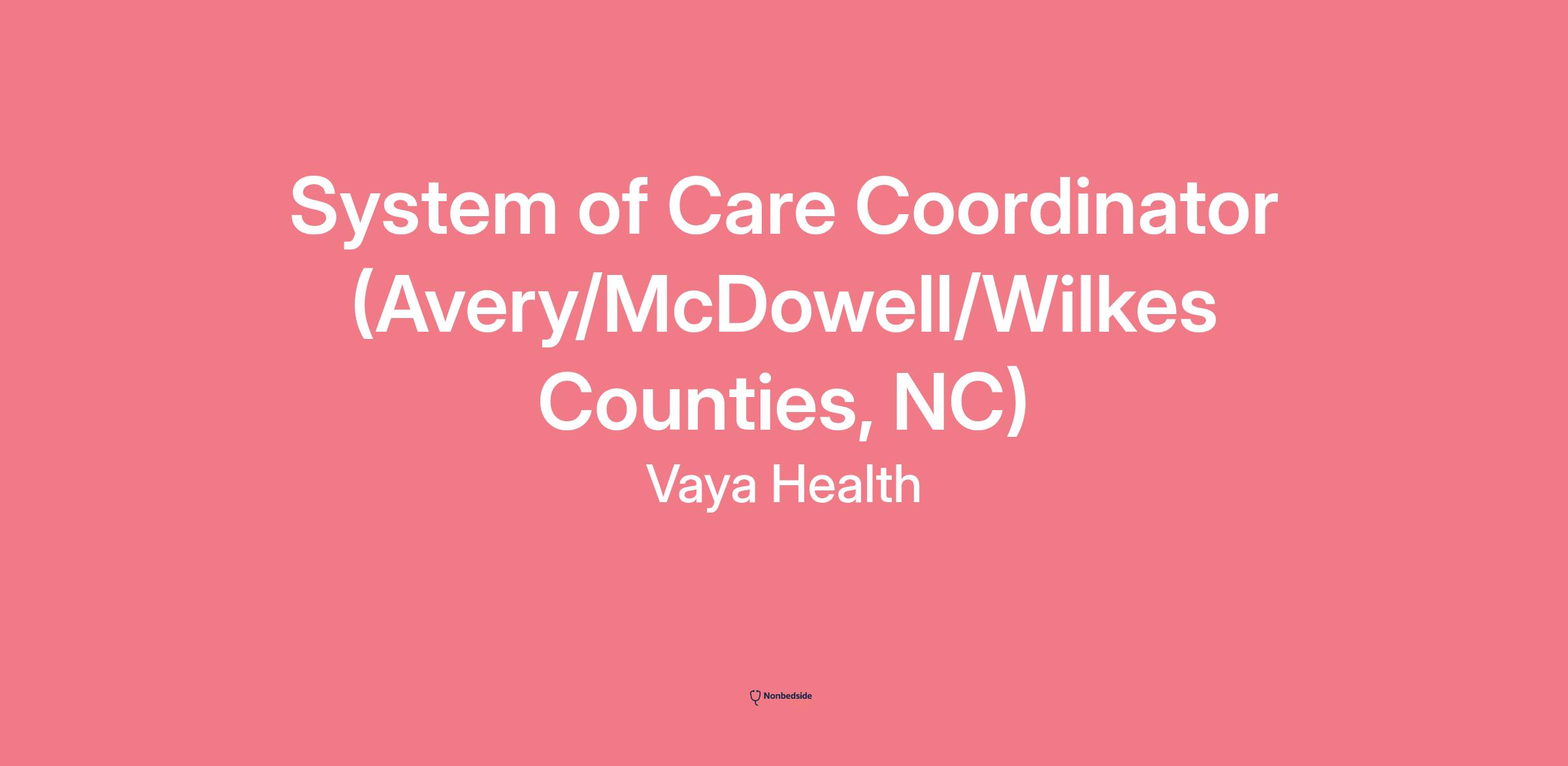 System of Care Coordinator (Avery/McDowell/Wilkes Counties, NC)