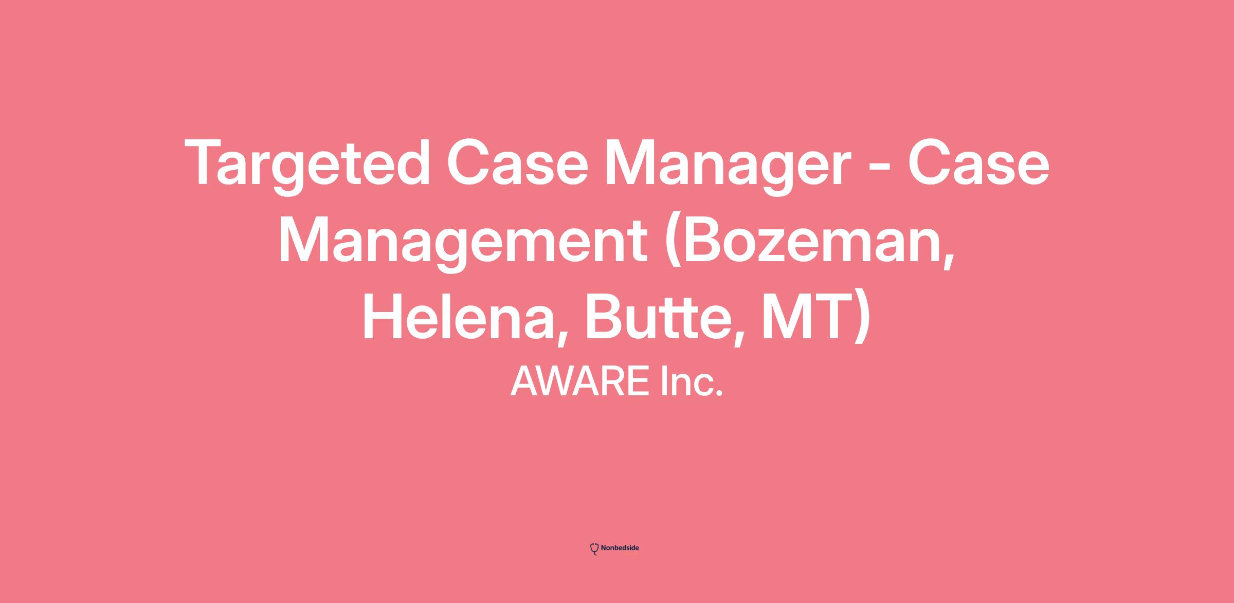 Targeted Case Manager - Case Management (Bozeman, Helena, Butte, MT)