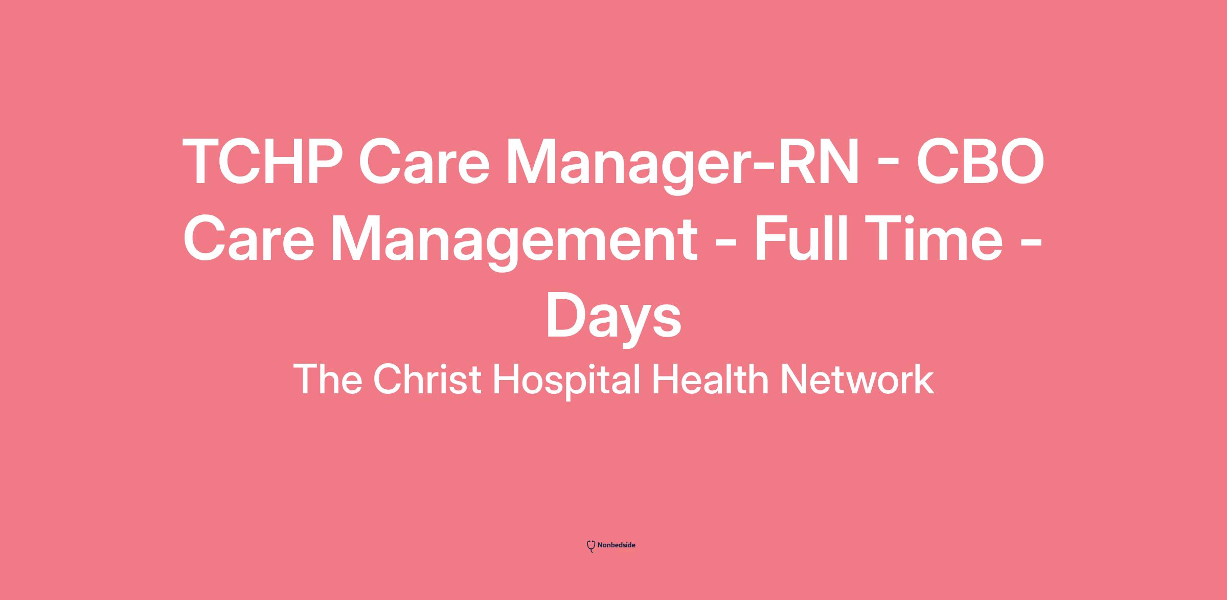 Join to apply for the TCHP Care Manager-RN - CBO Care Management - Full Time - Days role at The Christ Hospital Health Network.