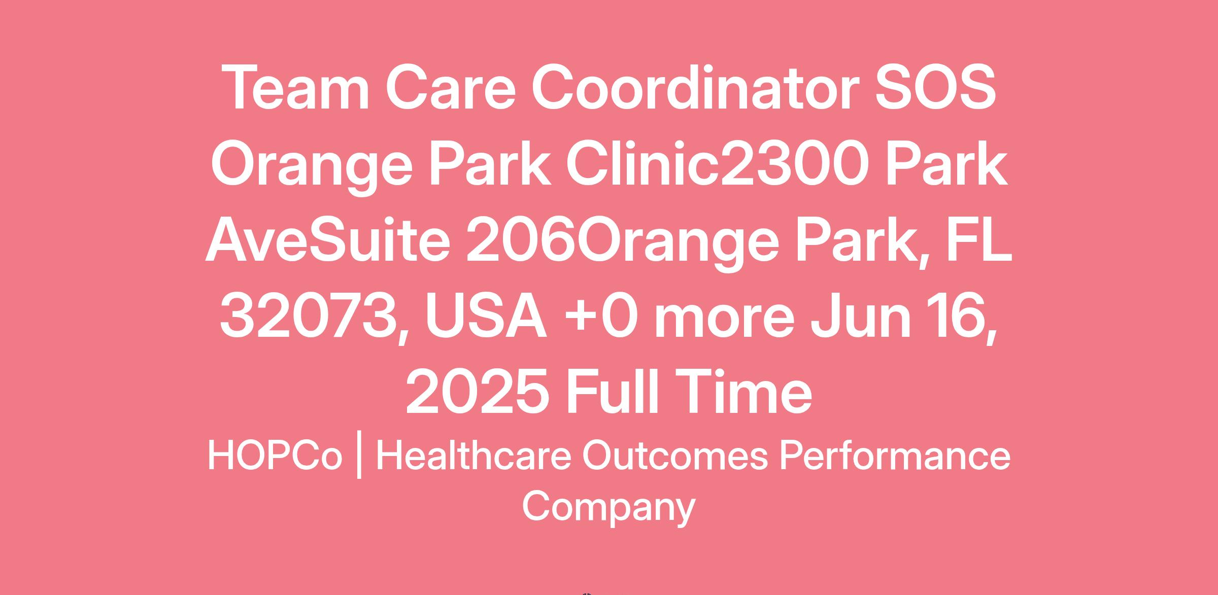 Team Care Coordinator (Surgical) Orange Park Clinic | Full-Time | Benefits Package | Competitive Compensation | Jacksonville, FL
