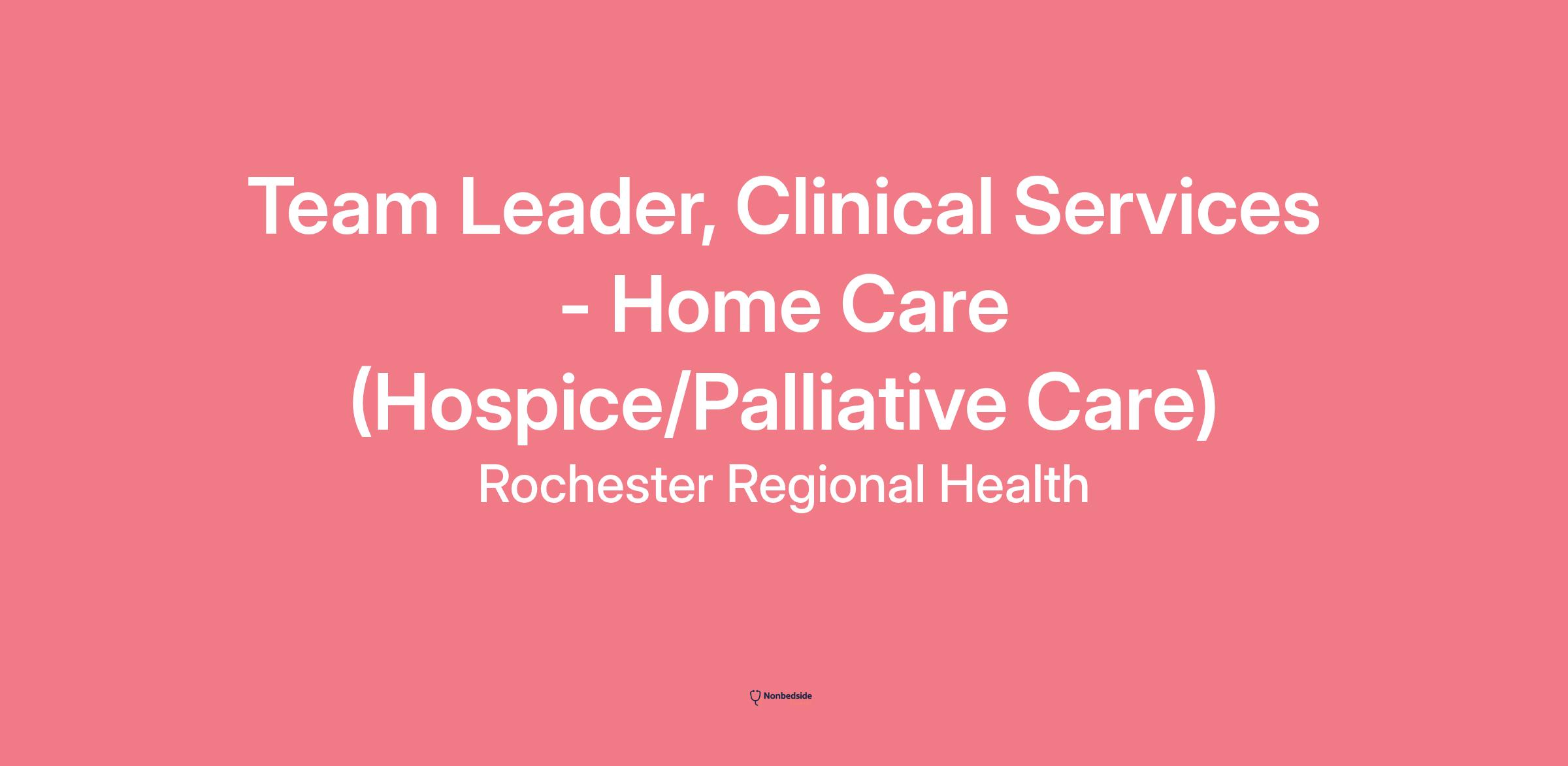 Job Title: Team Leader, Clinical services – Home Care (Hospice/Palliative Care)