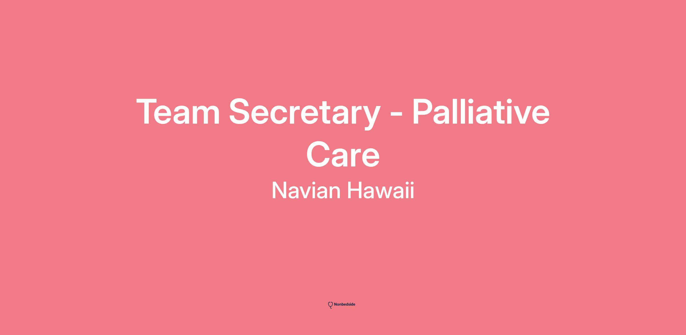 Overview Join to apply for the Team Secretary - Palliative Care role at Navian Hawaii .