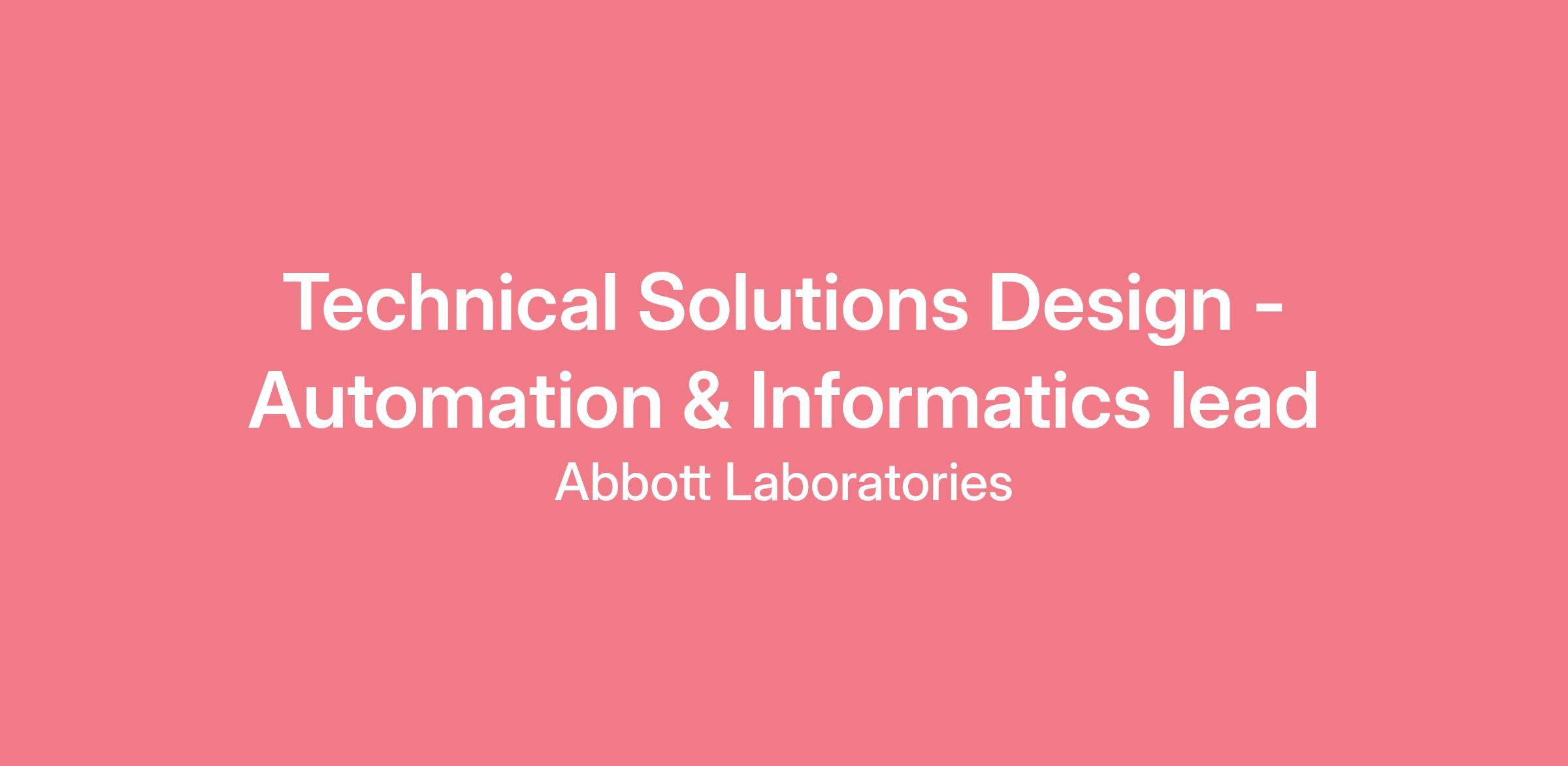 • Serve as the organization’s top expert in Abbott’s automation, informatics, and digital health portfolio to support solution design, proposals, and configurations.