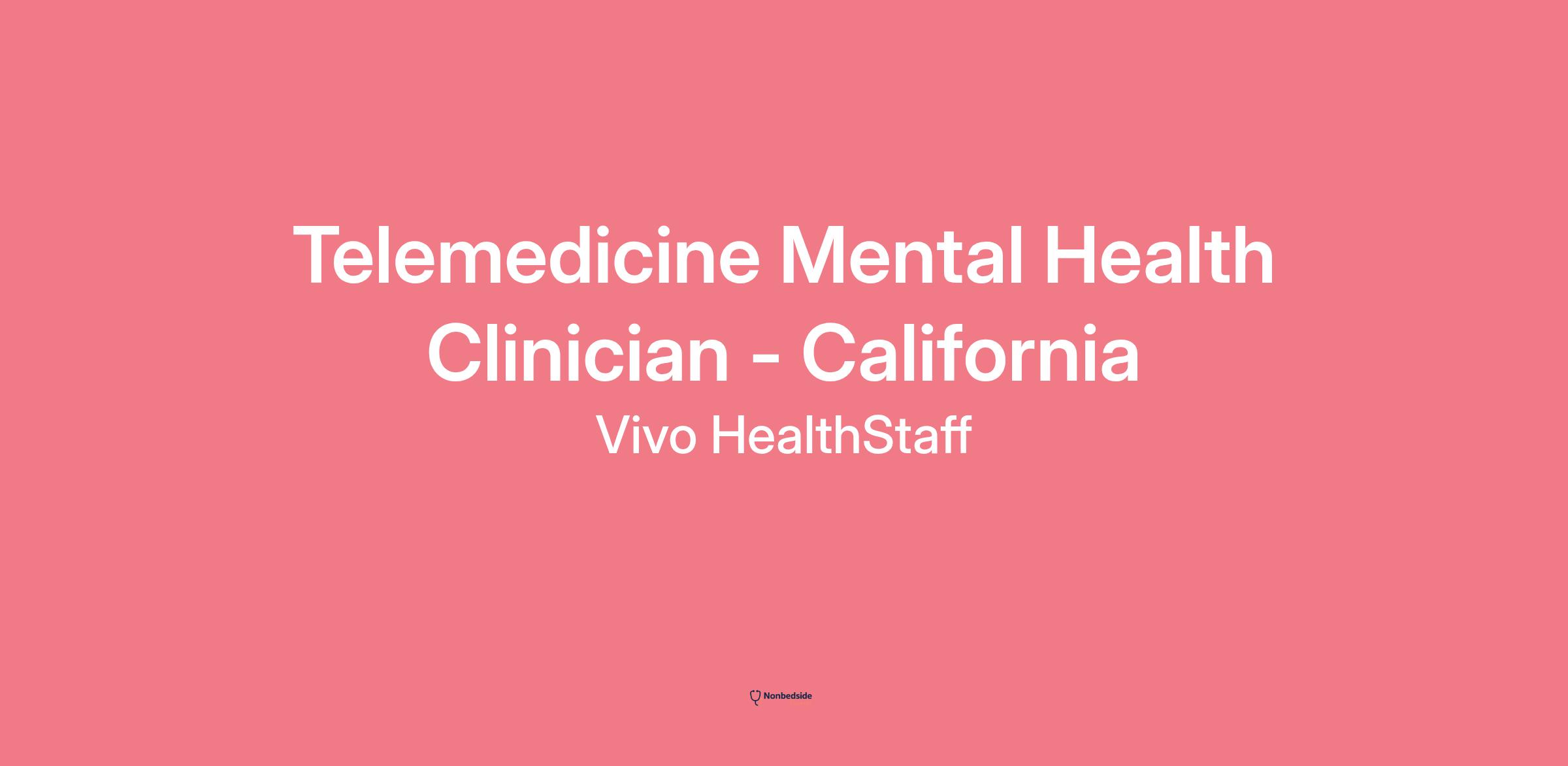 Vivo HealthStaff is recruiting for a Telemedicine Mental Health Clinician licensed in California.