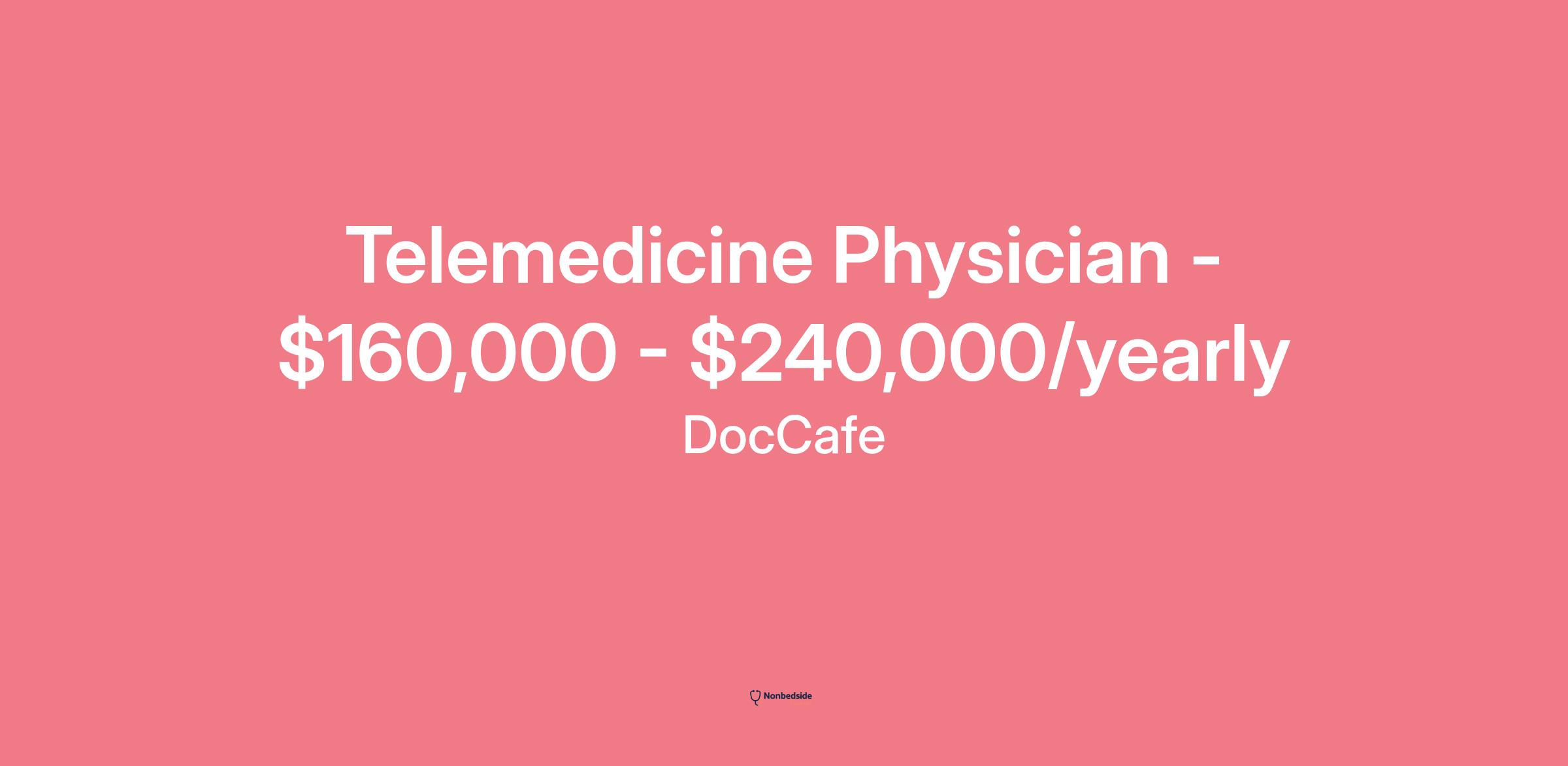 DocCafe has an immediate opening for the following position: Physician - Telemedicine in Rockville, Maryland.