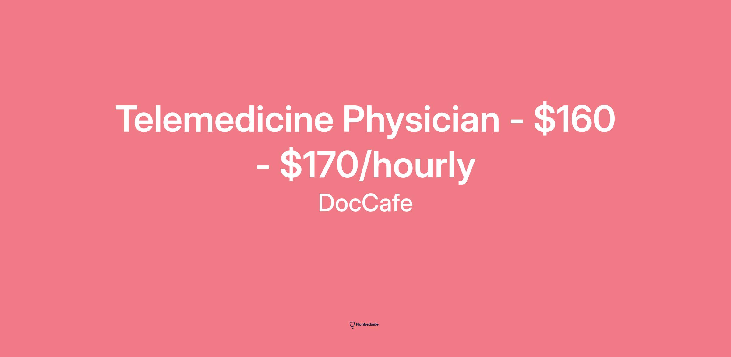 DocCafe has an immediate opening for the following position: Physician - Telemedicine in New York. Make $160 - $170/hourly.