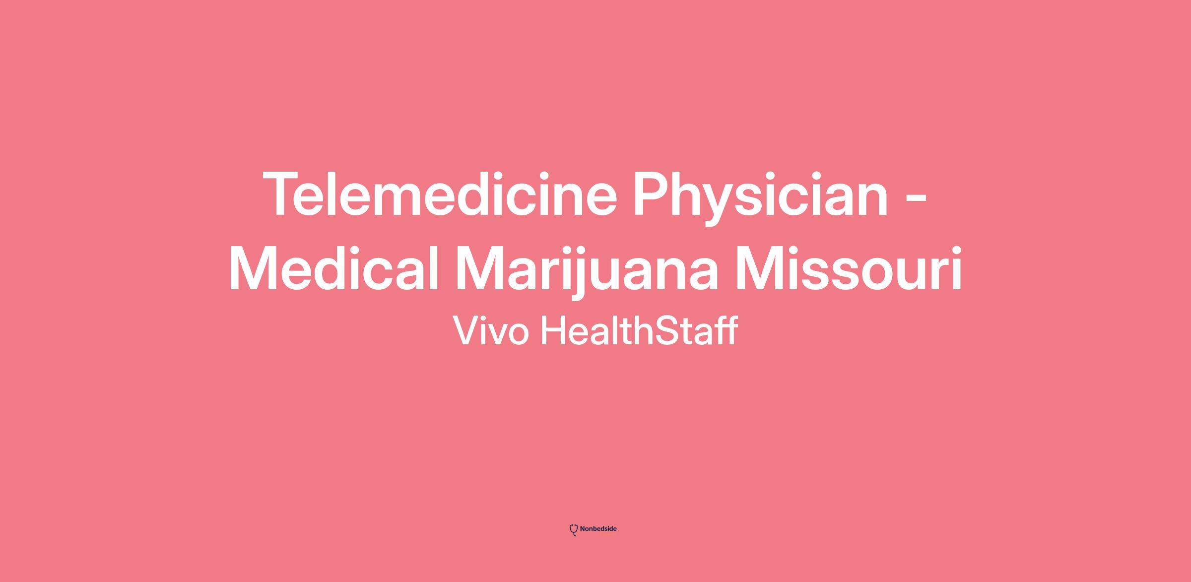 Vivo HealthStaff is searching for Physicians licensed in Missouri to conduct telemedicine Medical Marijuana Consultations.