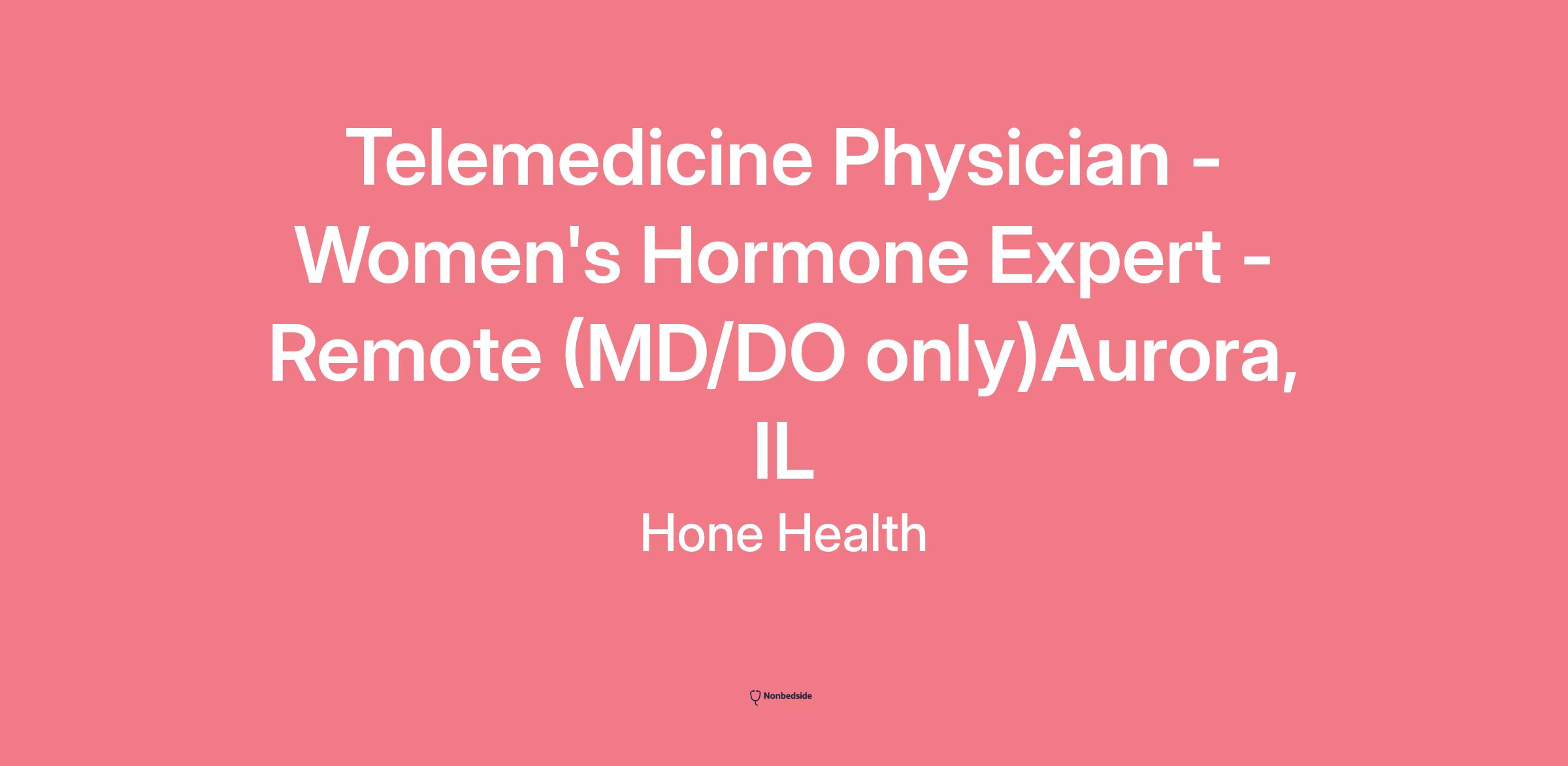 Telemedicine Physician - Women's Hormone Expert - Remote (MD/DO only)Aurora, IL