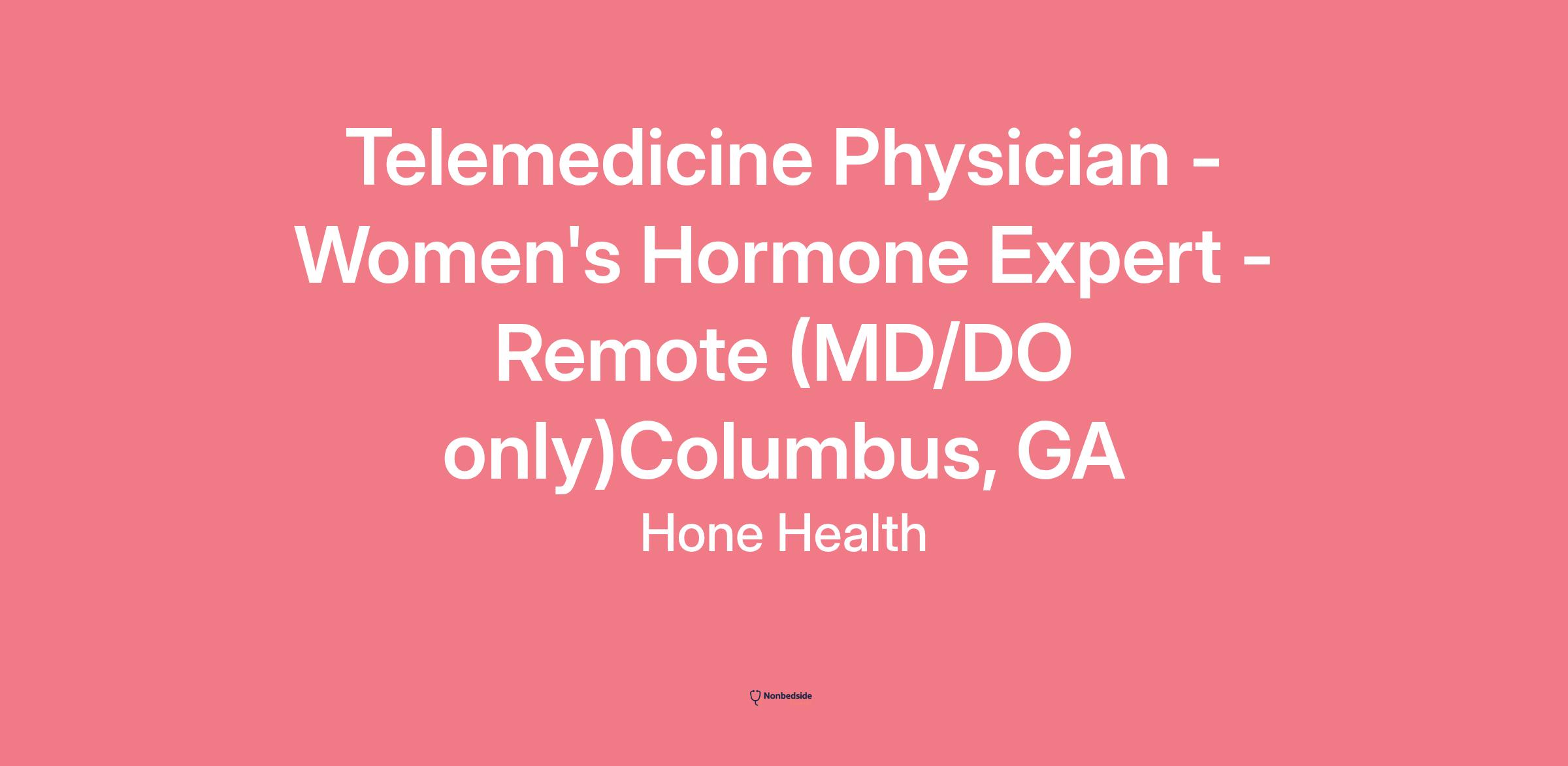 Telemedicine Physician - Women's Hormone Expert - Remote (MD/DO only)Columbus, GA