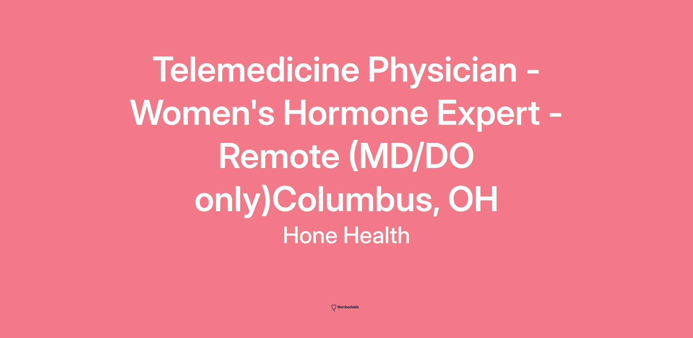 Telemedicine Physician - Women's Hormone Expert - Remote (MD/DO only)Columbus, OH
