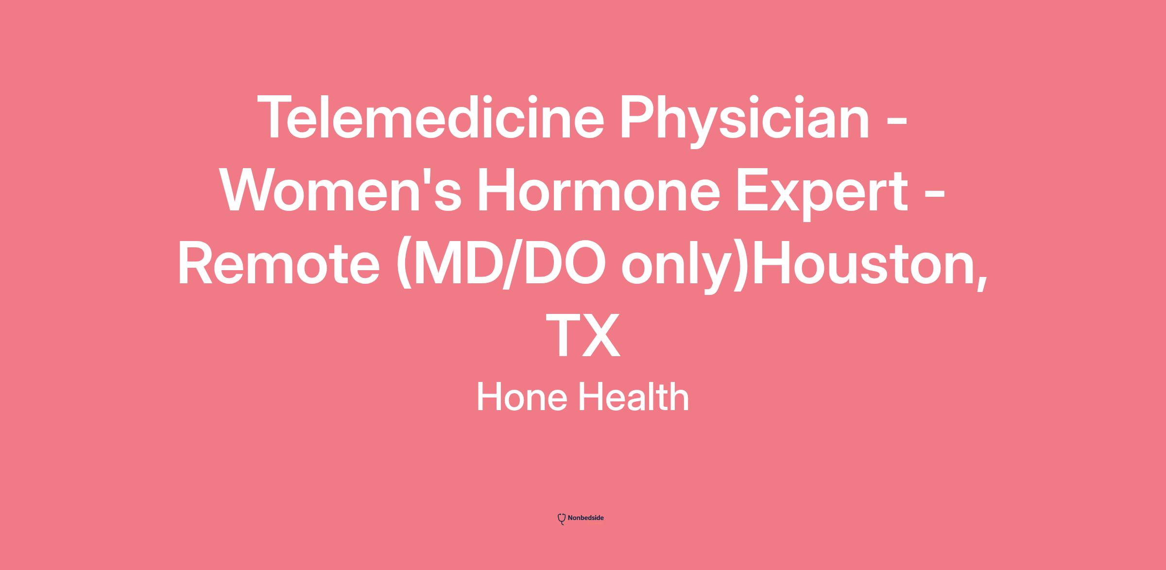 Telemedicine Physician - Women's Hormone Expert - Remote (MD/DO only)Houston, TX