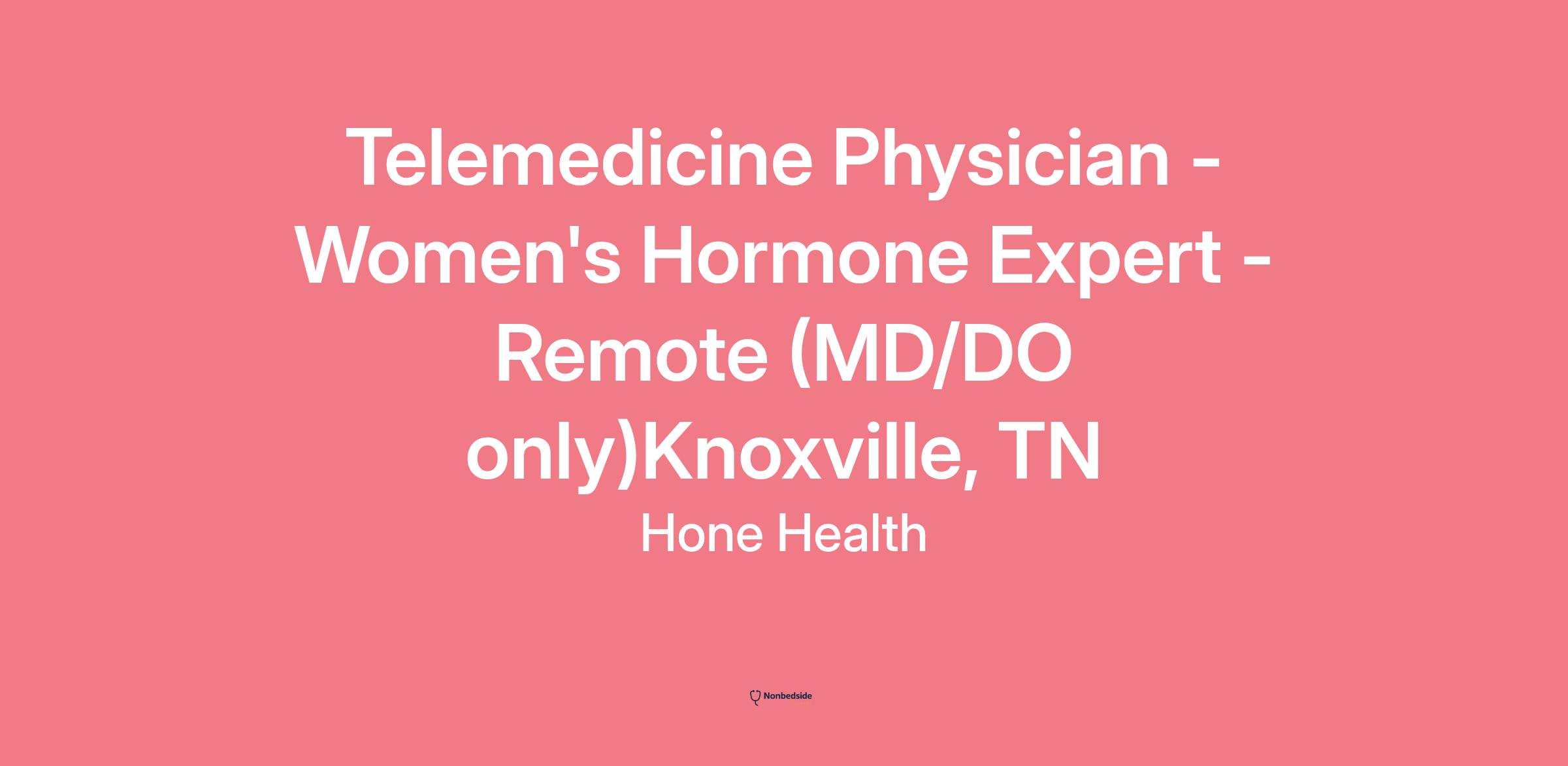 Telemedicine Physician - Women's Hormone Expert - Remote (MD/DO only)Knoxville, TN