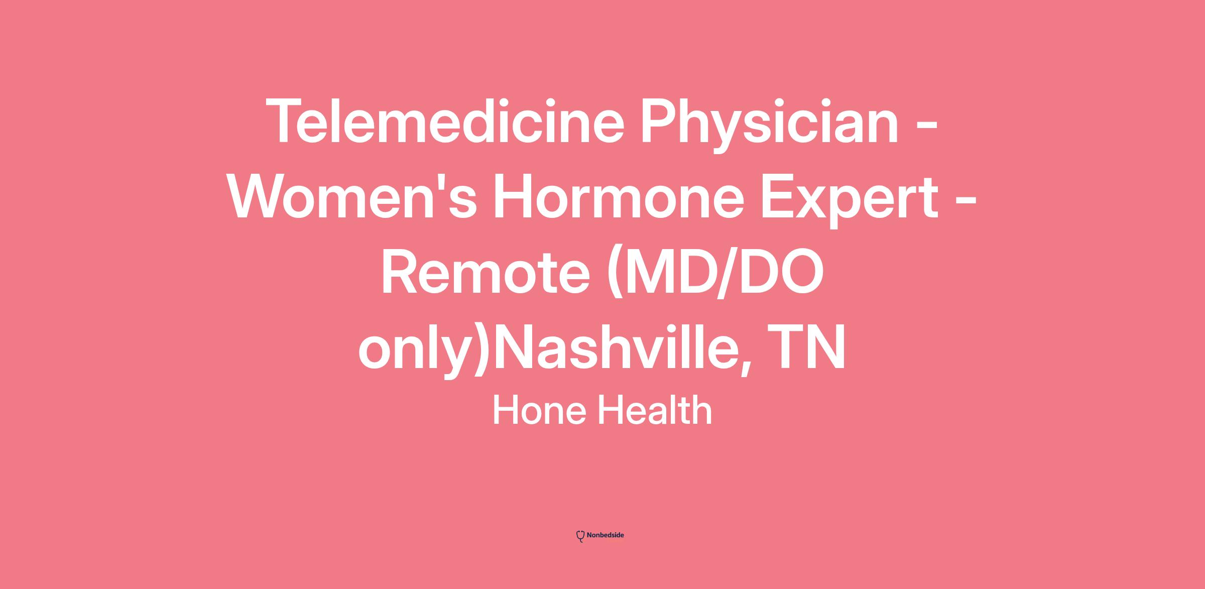 Telemedicine Physician - Women's Hormone Expert - Remote (MD/DO only)Nashville, TN
