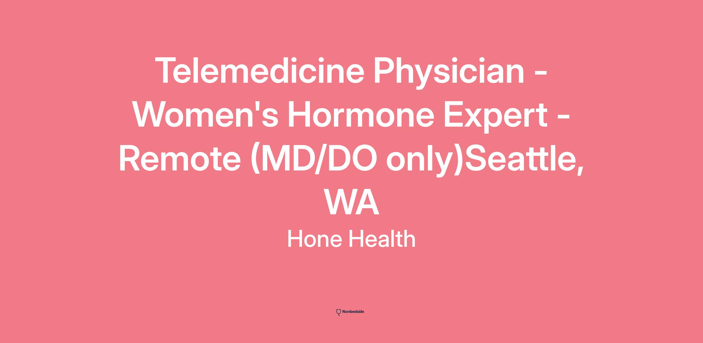 Telemedicine Physician - Women's Hormone Expert - Remote (MD/DO only)Seattle, WA