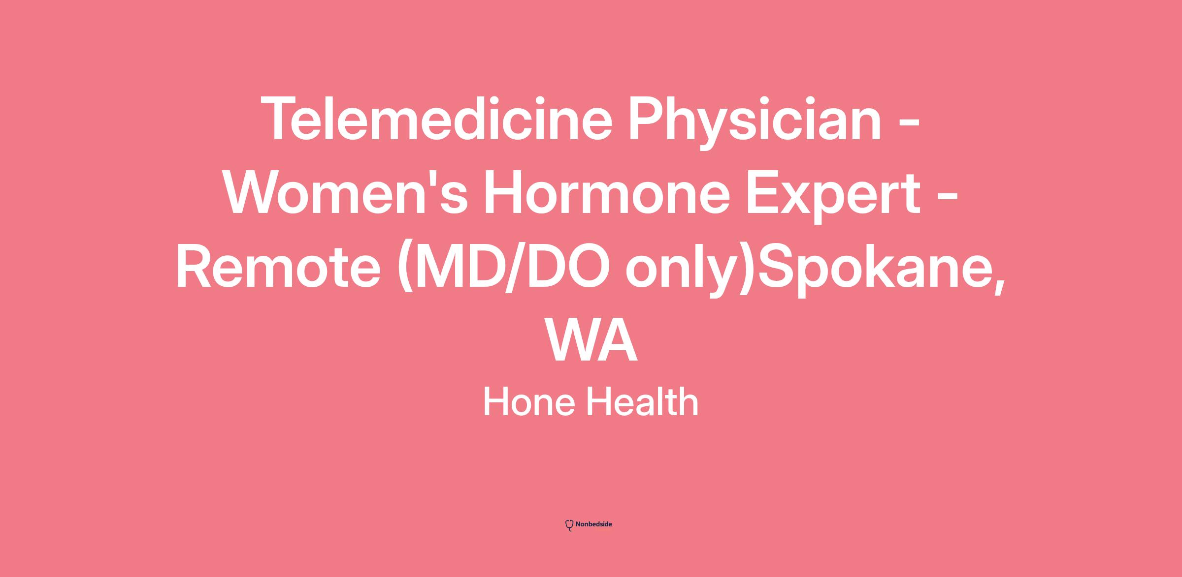 Telemedicine Physician - Women's Hormone Expert - Remote (MD/DO only)Spokane, WA