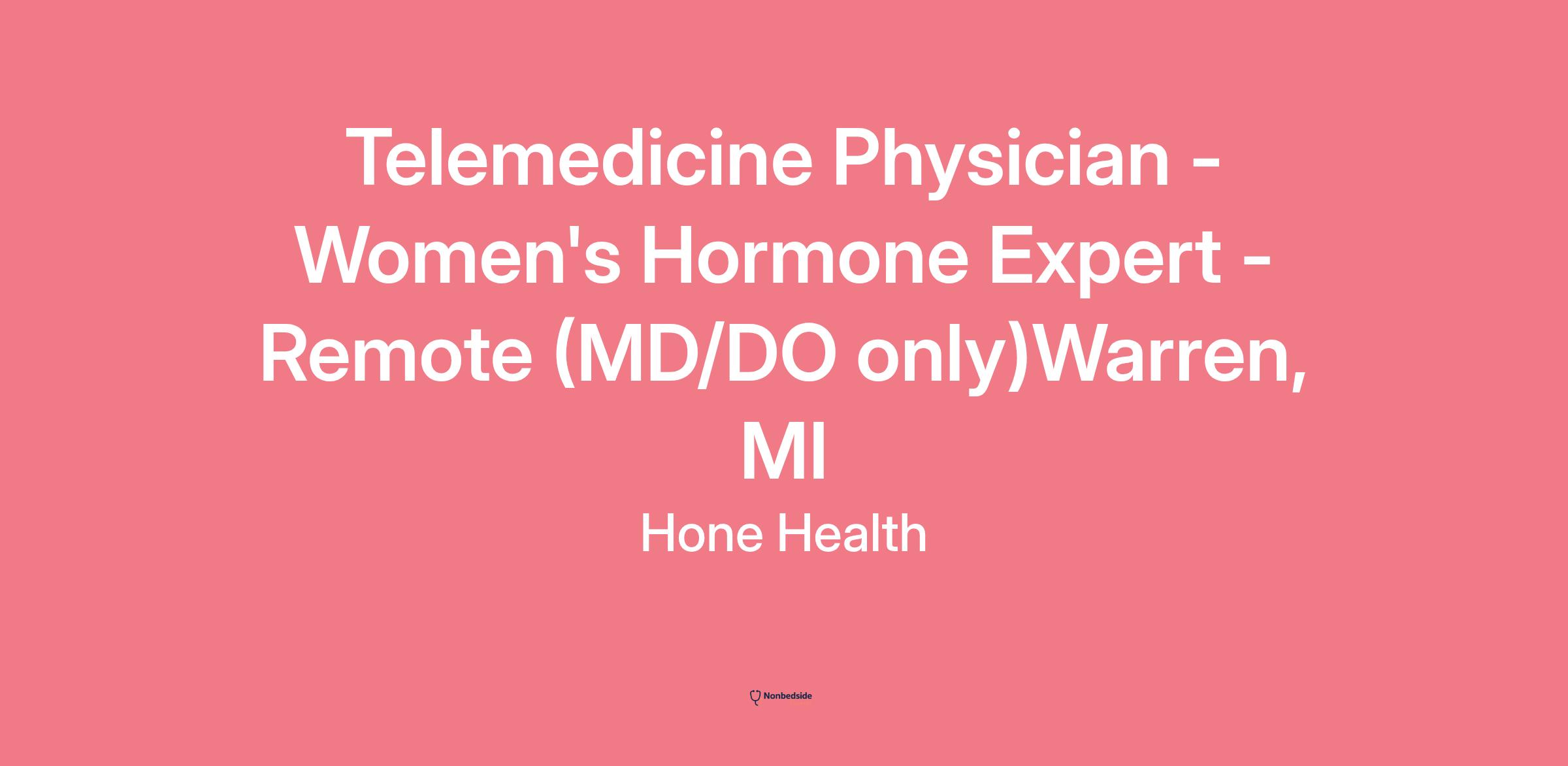 Telemedicine Physician - Women's Hormone Expert - Remote (MD/DO only)Warren, MI