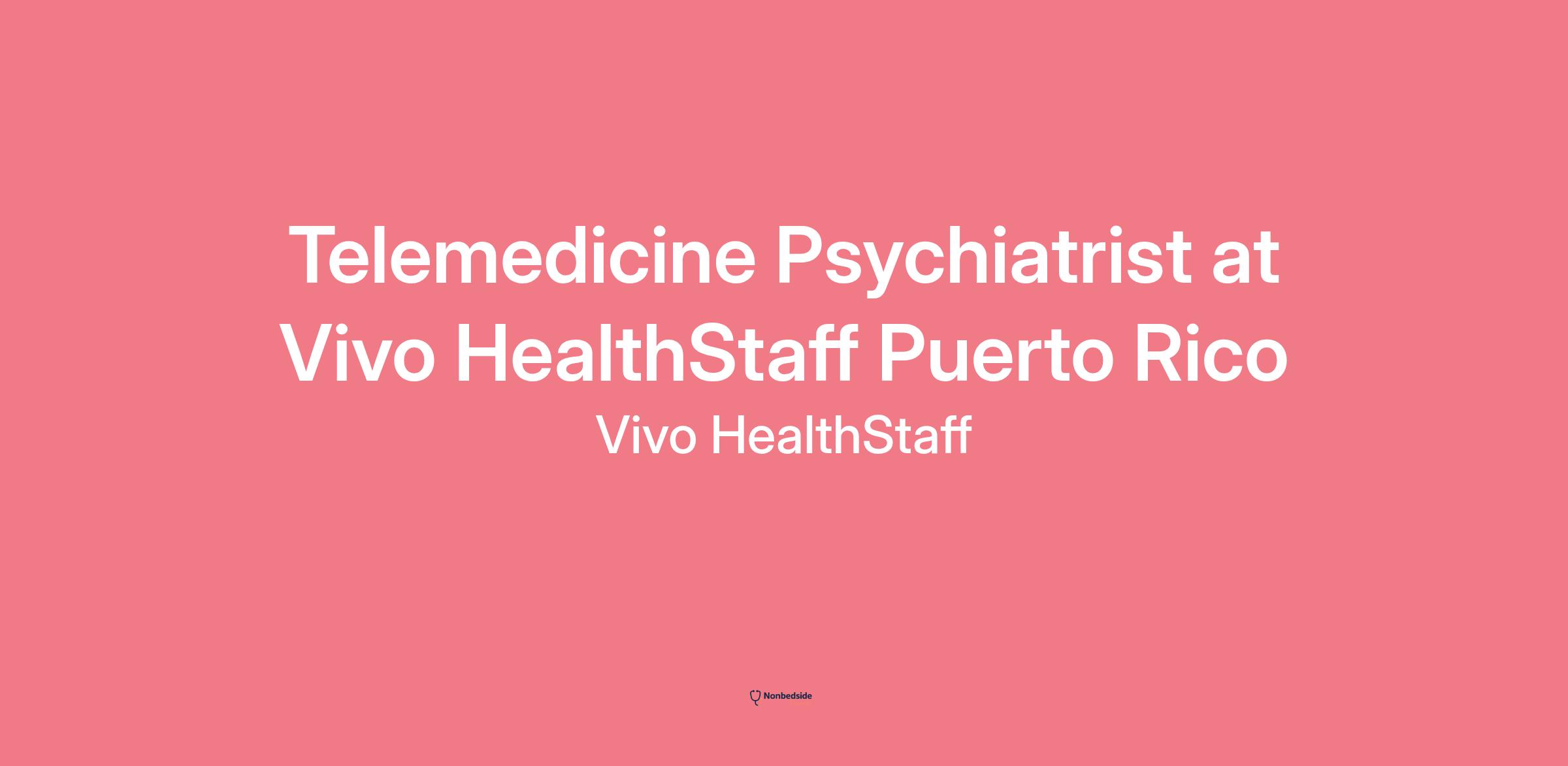 Overview Vivo HealthStaff is hiring a Telemedicine Psychiatrist with active licensure in Puerto Rico . This position supports a large therapy group with providing medication management services for their patients.