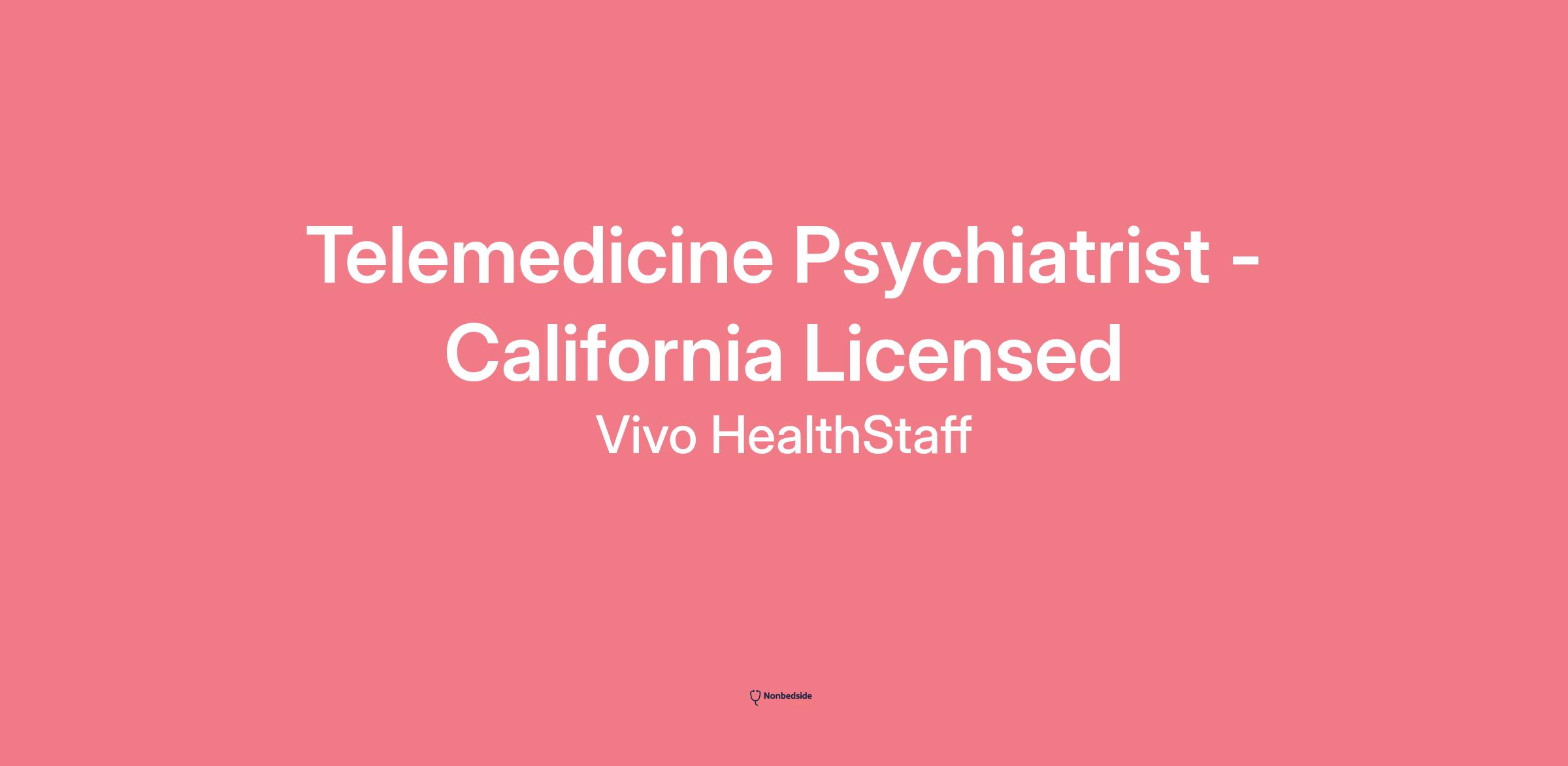 Vivo HealthStaff is recruiting a California-licensed Telemedicine Psychiatrist to practice in a public health setting. This position is fully-remote.