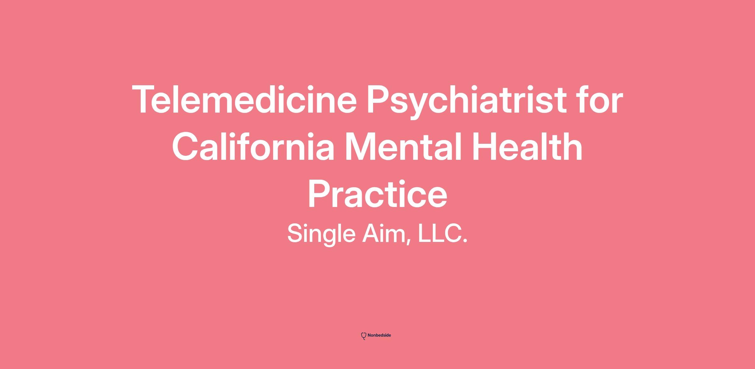 Telemedicine Psychiatrist for California Mental Health PracticePosted Aug 14, 2025CaliforniaMental HealthSingle Aim VerifiedApply To This JobJoin the exclusive network built for physicians seeking high-paying collaborating physician jobs and supervising roles. Discover opportunities that fit your specialty and licenses with over 200+ jobs updated daily. Directly connect, negotiate your terms, and pick the matches you want.Job DetailsWe are seeking a licensed psychiatrist to join our fully telemedicine mental health practice based in California. Our practice focuses on providing comprehensive mental health services, including medication management for patients with various psychiatric needs. As a collaborating psychiatrist, you will work closely with a full-time nurse practitioner (NP) who has three years of clinical experience. The role involves overseeing the prescription of Schedule II medications, such as opioids, Adderall, or Ritalin, in compliance with DEA regulations. This position is ideal for a psychiatrist who is ready to start within a month and is interested in a dynamic telemedicine environment.Estimated Compensation$950 - $1,150per month.Collaboration Role DetailsNumber & Type Of Clinicians1 NPStateCaliforniaPhysician Speciality Requestedyes, PsychiatryStart TimeframeLess than 1 monthno,yesYear Experience as Advanced Practice Provider3