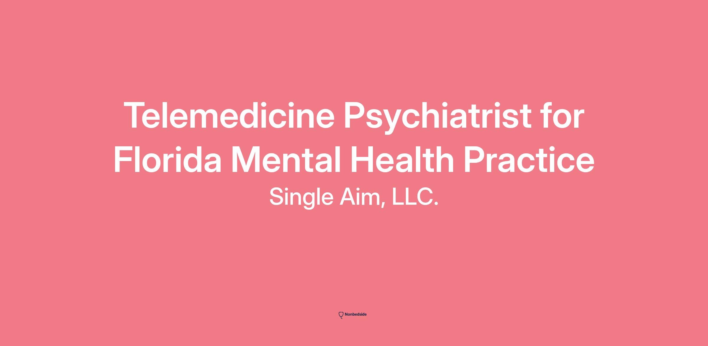 Telemedicine Psychiatrist for Florida Mental Health PracticePosted May 9, 2025FloridaMental HealthSingle Aim VerifiedApply To This JobJoin the exclusive network built for physicians seeking high-paying collaborating physician jobs and supervising roles. Discover opportunities that fit your specialty and licenses with over 200+ jobs updated daily. Directly connect, negotiate your terms, and pick the matches you want.Job DetailsJoin our innovative, fully telemedicine mental health practice based in Florida as a collaborating psychiatrist. We are seeking a licensed psychiatrist to partner with a dedicated nurse practitioner (NP) who has one year of clinical experience. Our practice focuses on providing comprehensive mental health care, including the management of medications such as Adderall and Ritalin. This part-time position offers the opportunity to collaborate remotely, ensuring flexible work arrangements. We are looking for a psychiatrist who can start immediately and is passionate about delivering quality mental health services in a virtual setting.Estimated Compensation$850 - $1,050per month.Collaboration Role DetailsNumber & Type Of Clinicians1 NPStateFloridaPhysician Speciality Requestedyes, PsychiatryStart TimeframeImmediatelyno,yesYear Experience as Advanced Practice Provider1