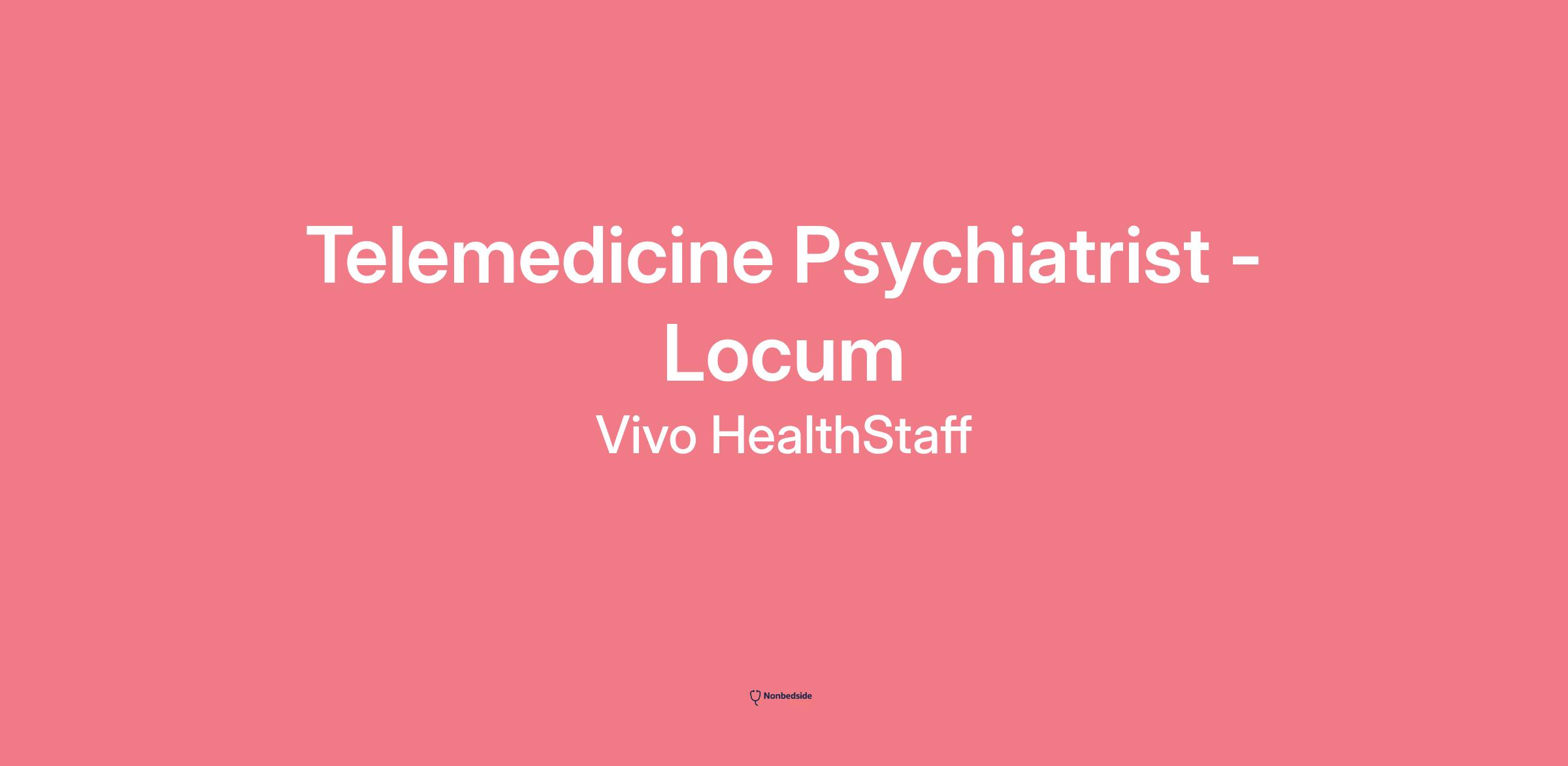 Vivo HealthStaff is hiring Psychiatrist with active licensure in California to work for a TMS Psychiatric Group in California. Due to insurance contracts, all Psychiatrists must reside in California.