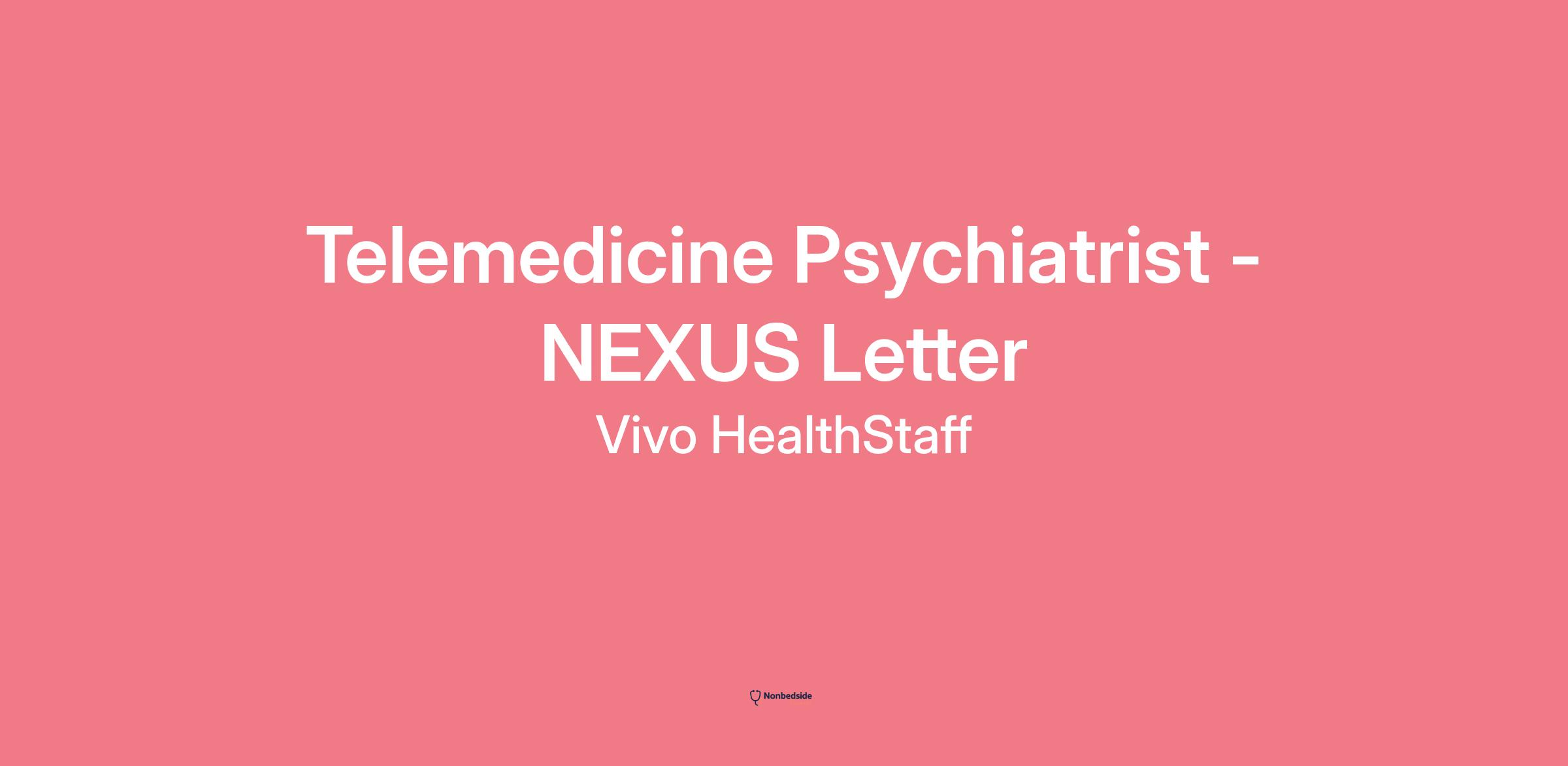 Vivo HealthStaff is hiring Telemedicine Psychiatrists for Veteran exams for NEXUS Letters with active licensure in Puerto Rico.