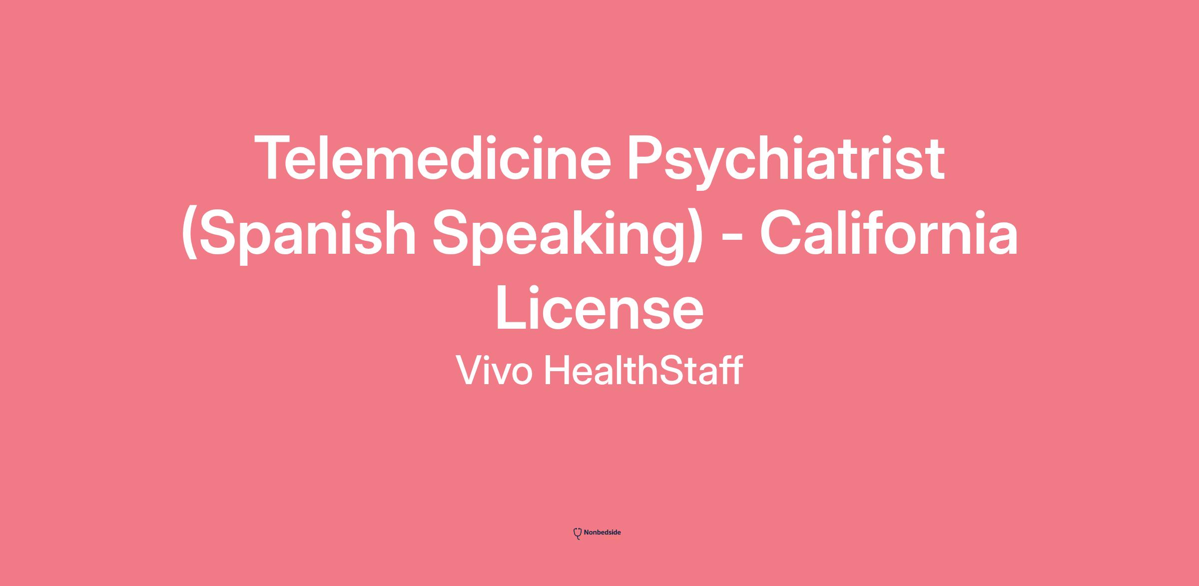 Vivo HealthStaff is hiring a Telemedicine Psychiatrist with active licensure in California. This position supports a community mental health non-profit.