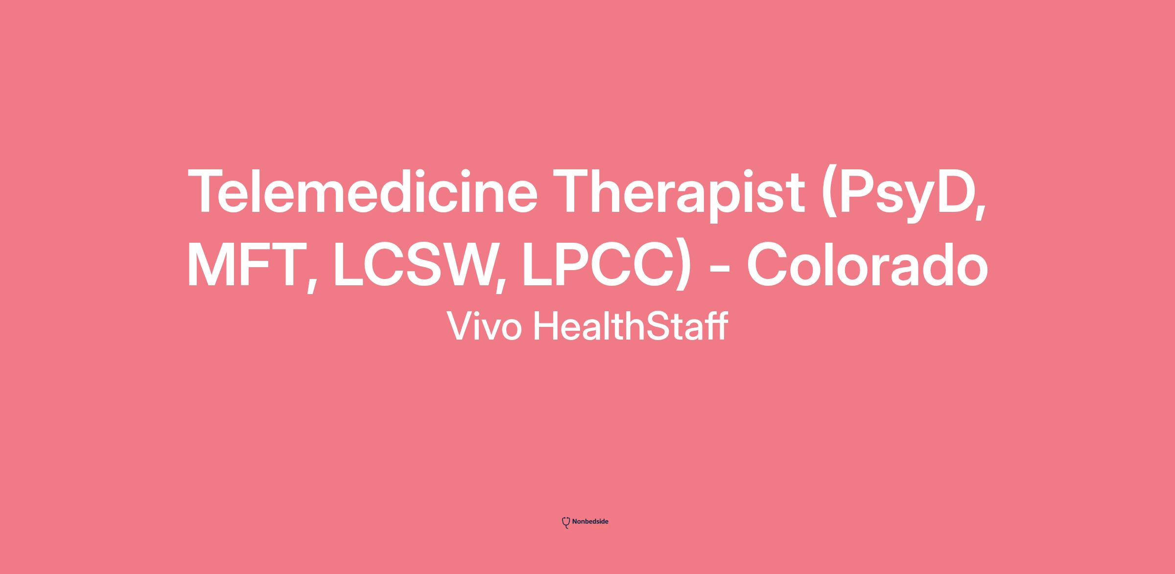 Vivo HealthStaff is hiring a Telemedicine Mental Health Therapist with active licensure in Colorado.