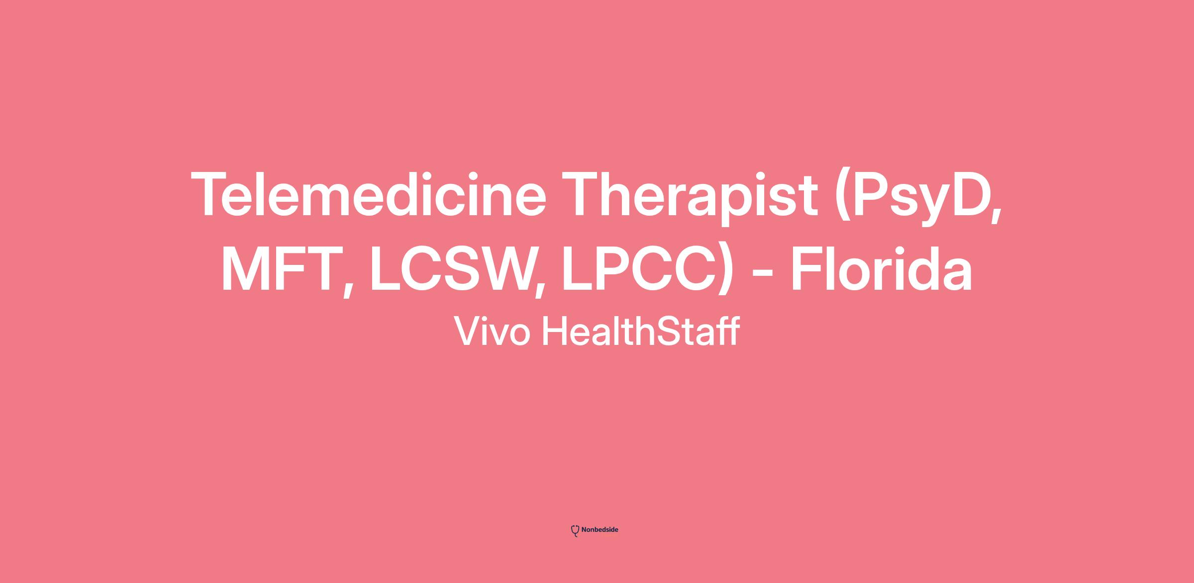Vivo HealthStaff is hiring a Telemedicine Mental Health Therapist with active licensure in Florida.