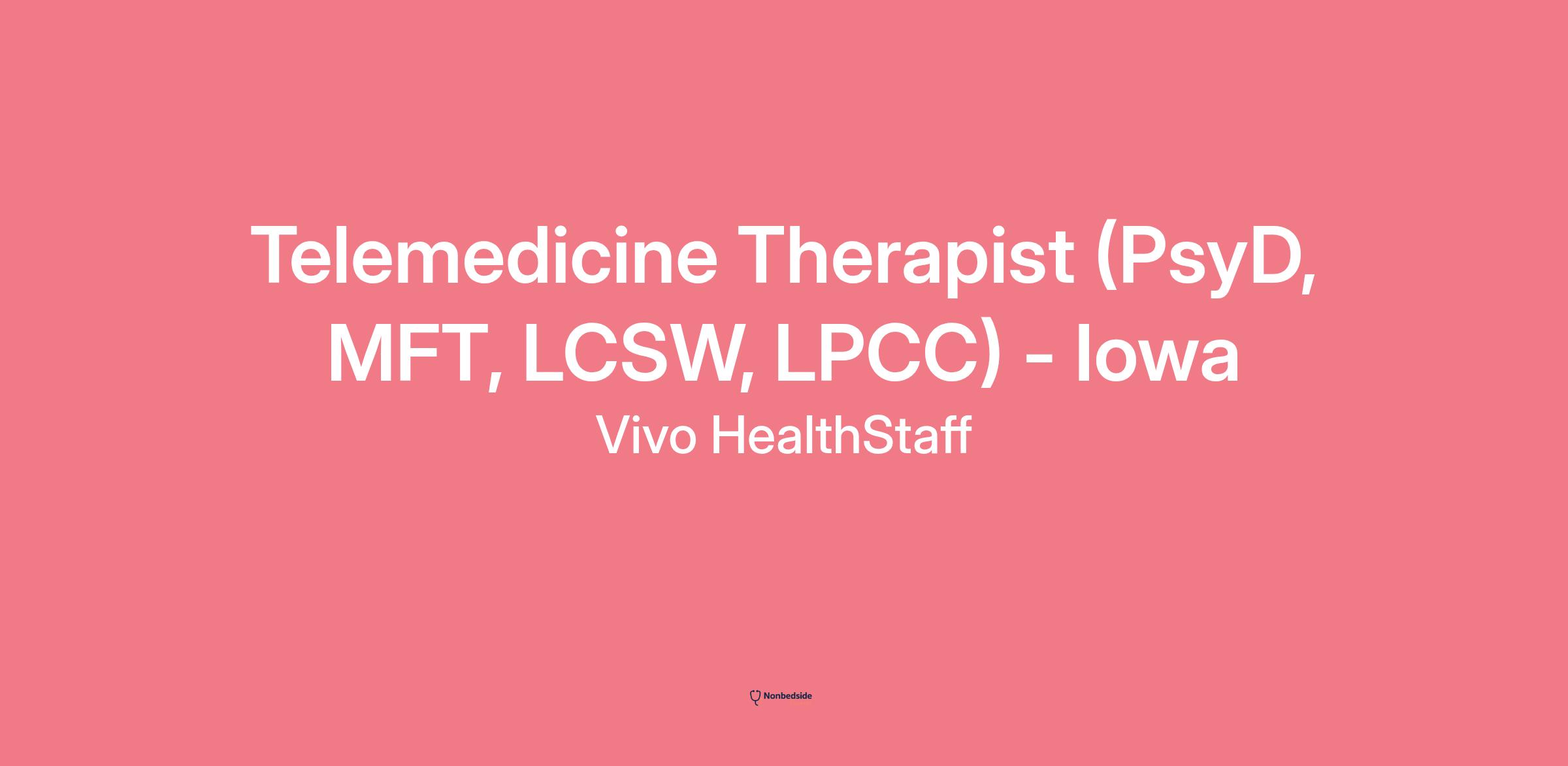 Vivo HealthStaff is hiring a Telemedicine Mental Health Therapist with active licensure in Iowa.