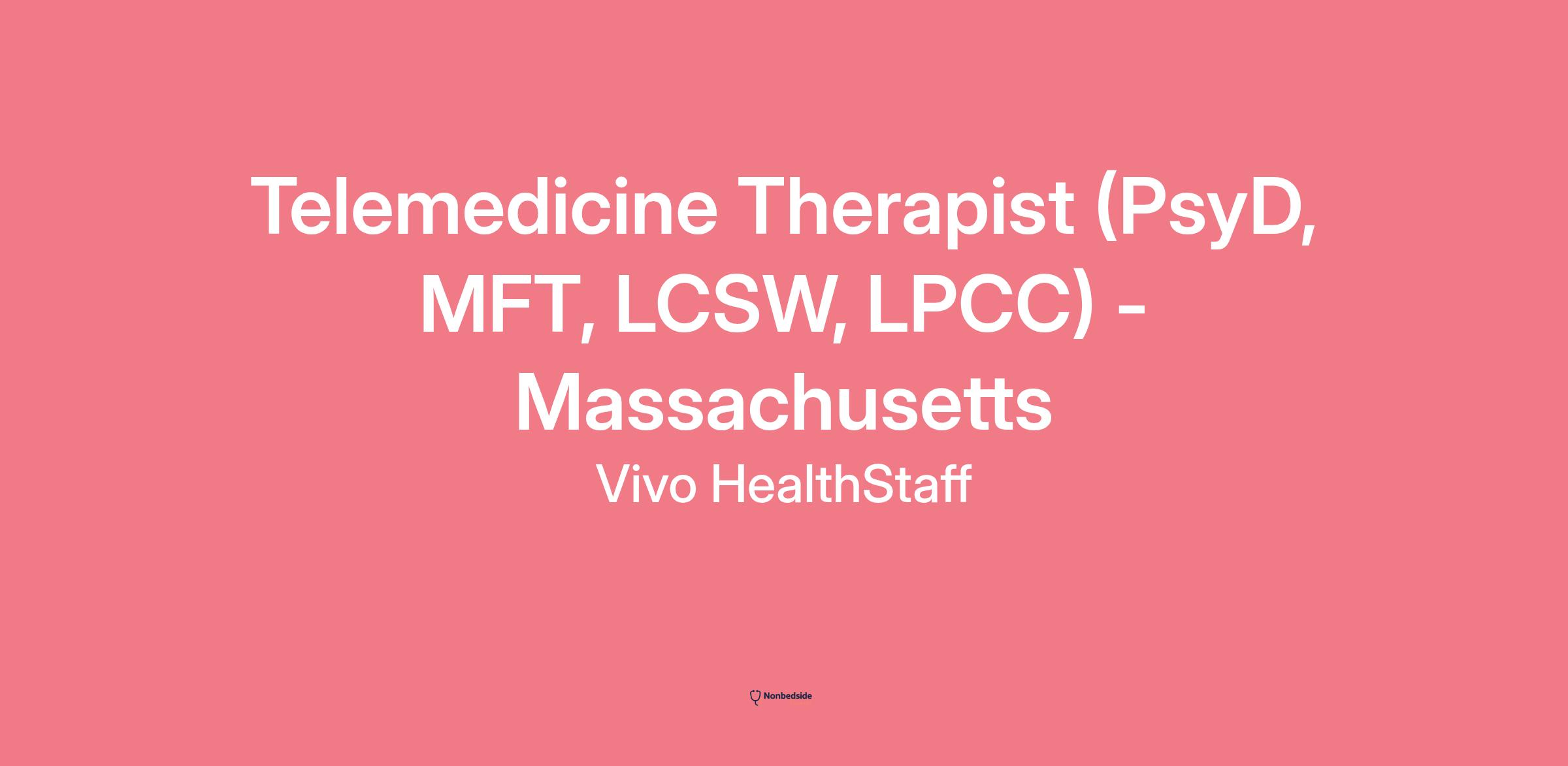 Vivo HealthStaff is hiring a Telemedicine Mental Health Therapist with active licensure in Massachusetts.